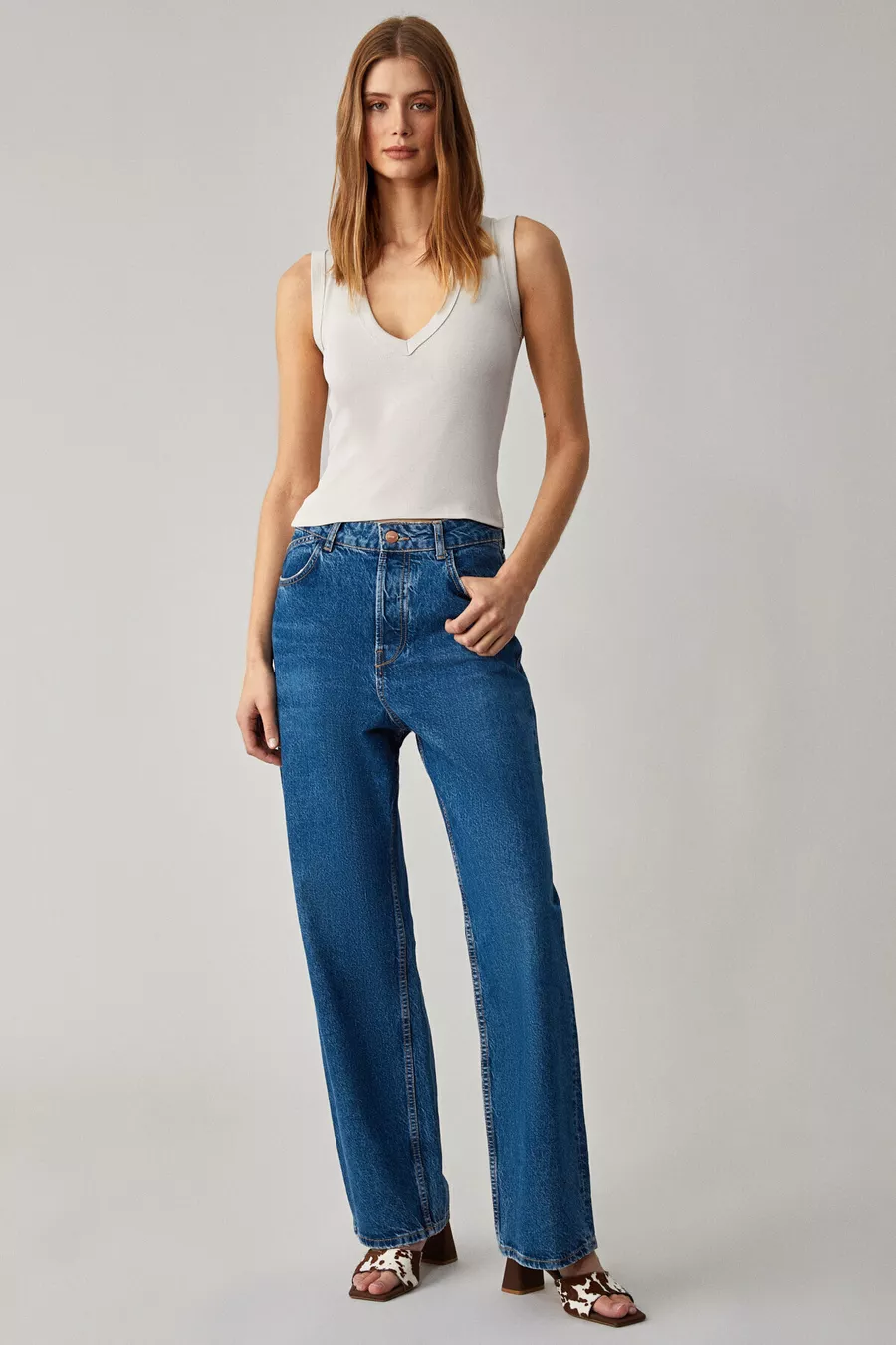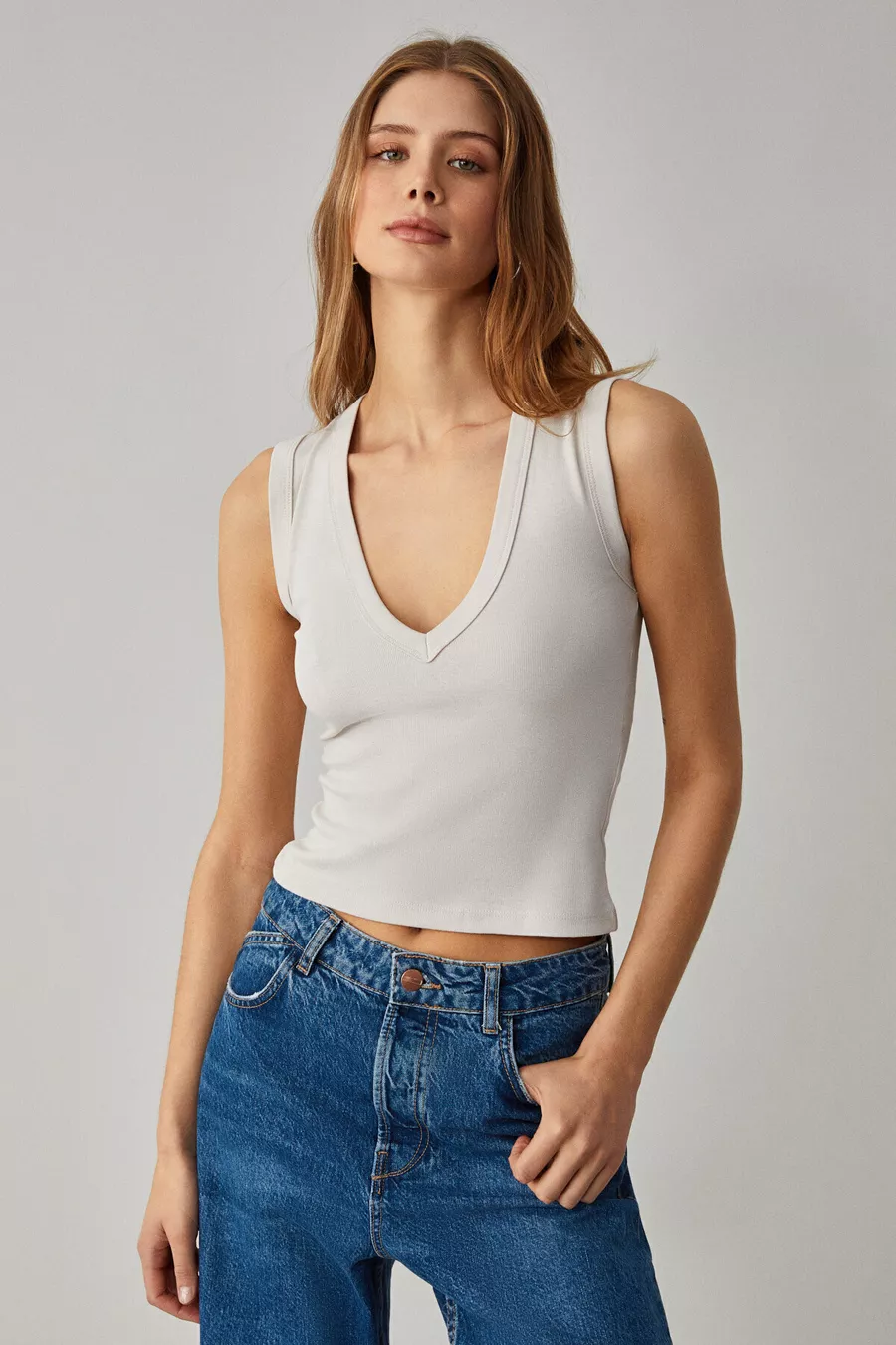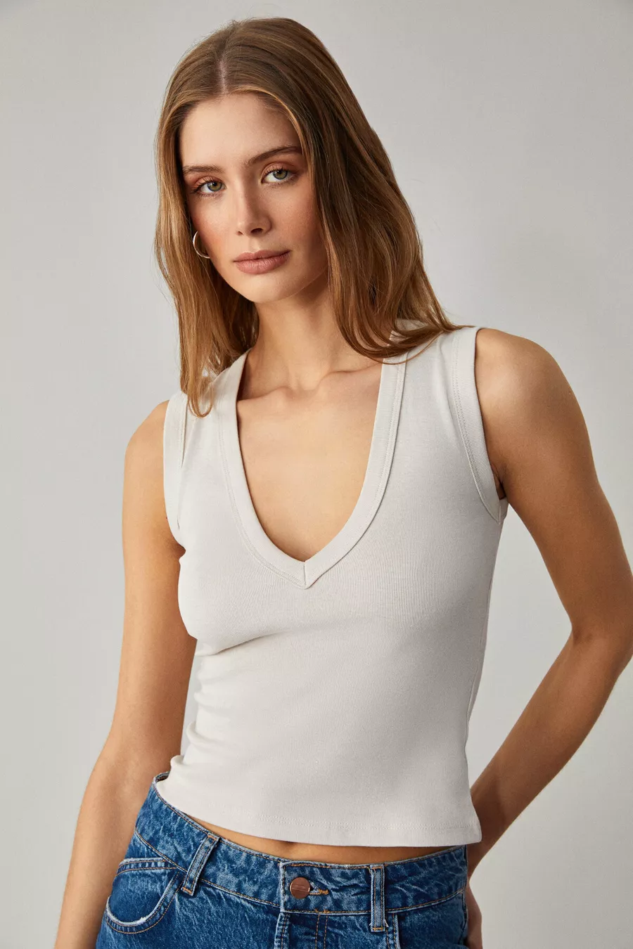Lescosa Dames Slim Fit V-hals Mouwloze Beige Top