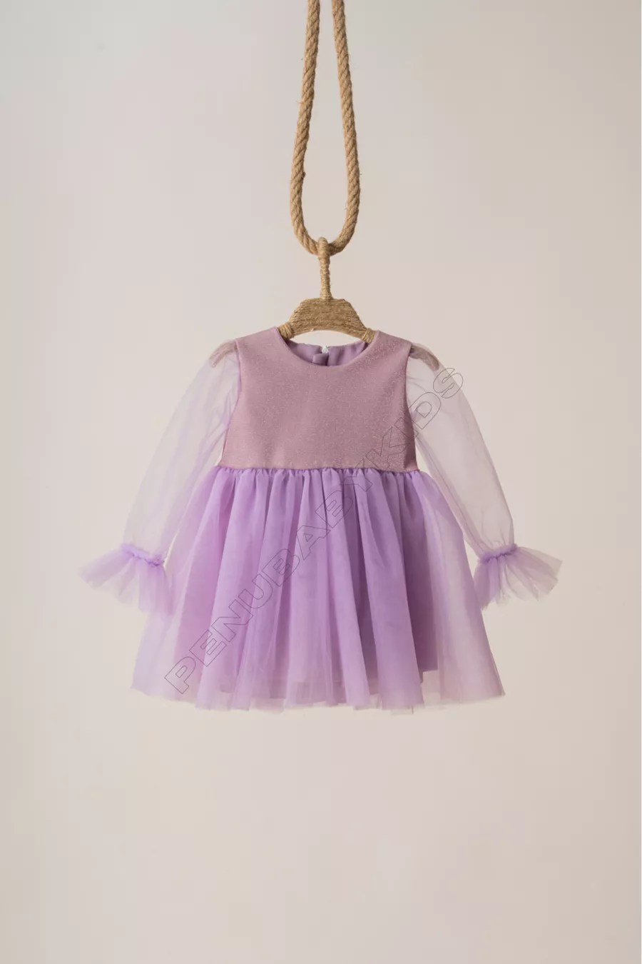 Lila Lange Tulemouw Jurkje voor Meisjes - Assepoester