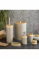 Limpia Bamboe Motief Crème 5-delige Badkamer Set Prullenbak, Vloeibare Zeepdispenser, Tandenborstelhouder