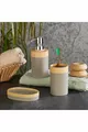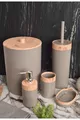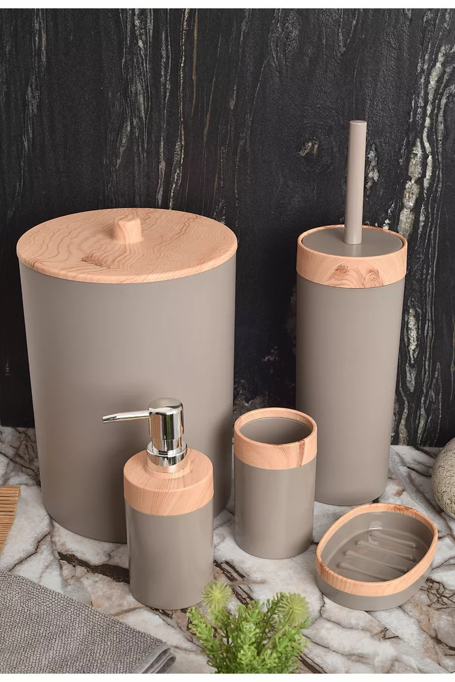 Limpia Bamboe Patroon 5-delige Badkamerset Prullenbak Vloeibare Zeepdispenser Tandenborstelhouder Badkamerset Crème