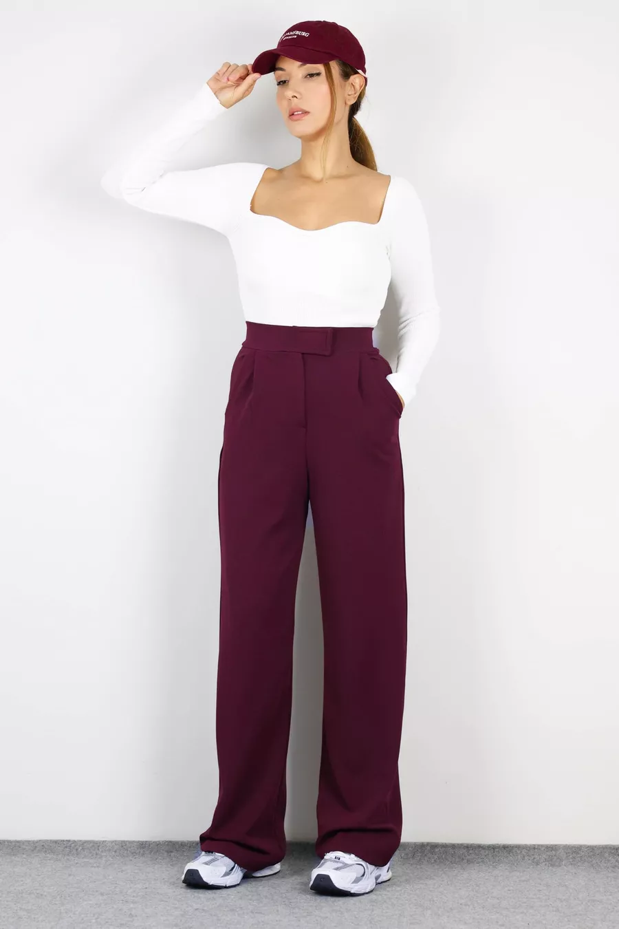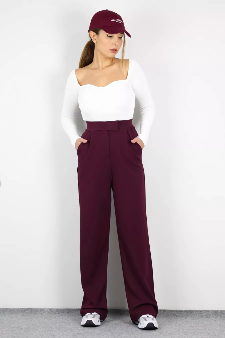 Line Dames Palazzo Broek met Rits en Lycra in Bordeaux