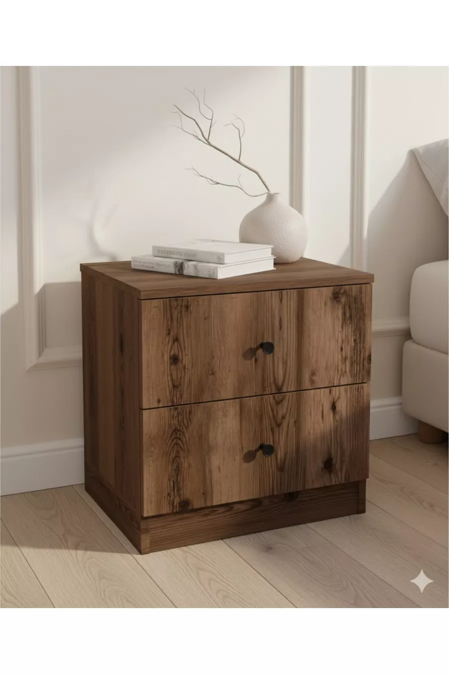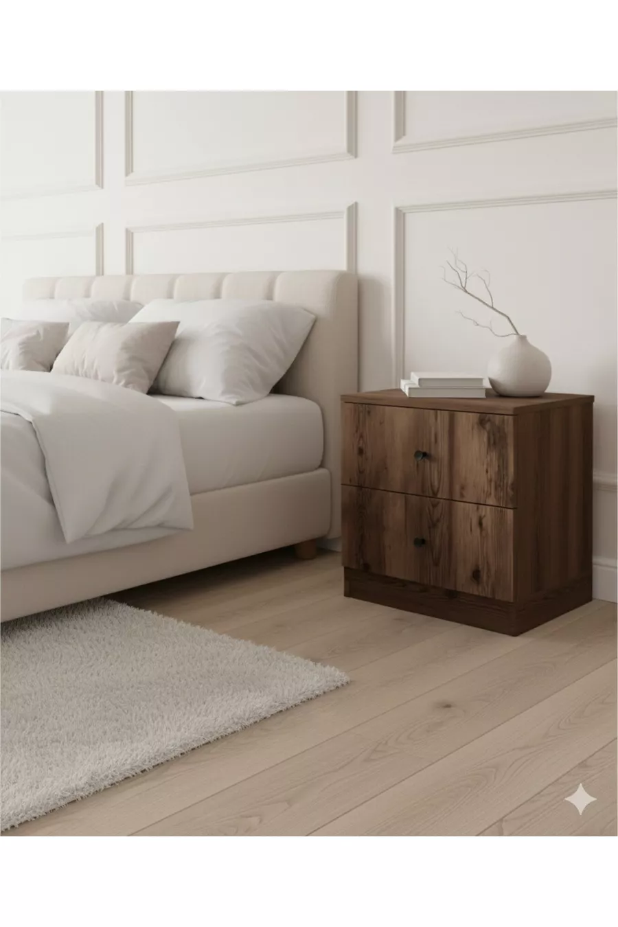 Materiaal: Suntalam Kleur: Wit Aantal lades: 2 Hoogte: 40 cm Breedte: 40 cm Diepte: 35 cm Herkomst: TR