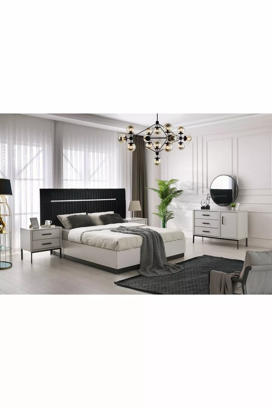 Setinhoud: Bed + 2 nachtkastjes + ladekast + kledingkast