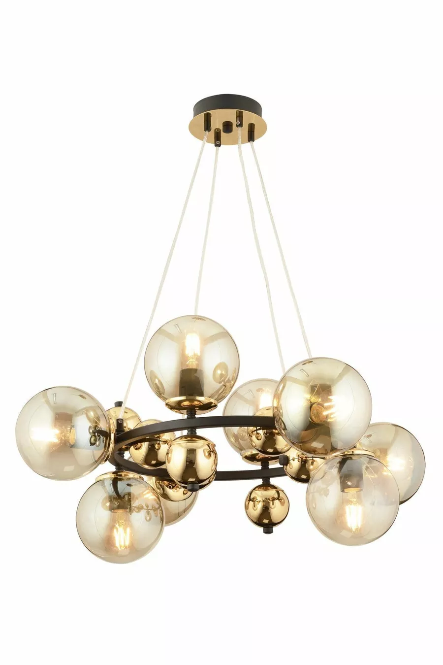 Materiaal: Glas Model: Modern Lamp Type: Niet gespecificeerd Aantal lampen: 7 Kleur: Zwart Hoogte: 81 - 90 cm Gebruiksruimte: Woonkamer / Zitkamer Kenmerk: Rond