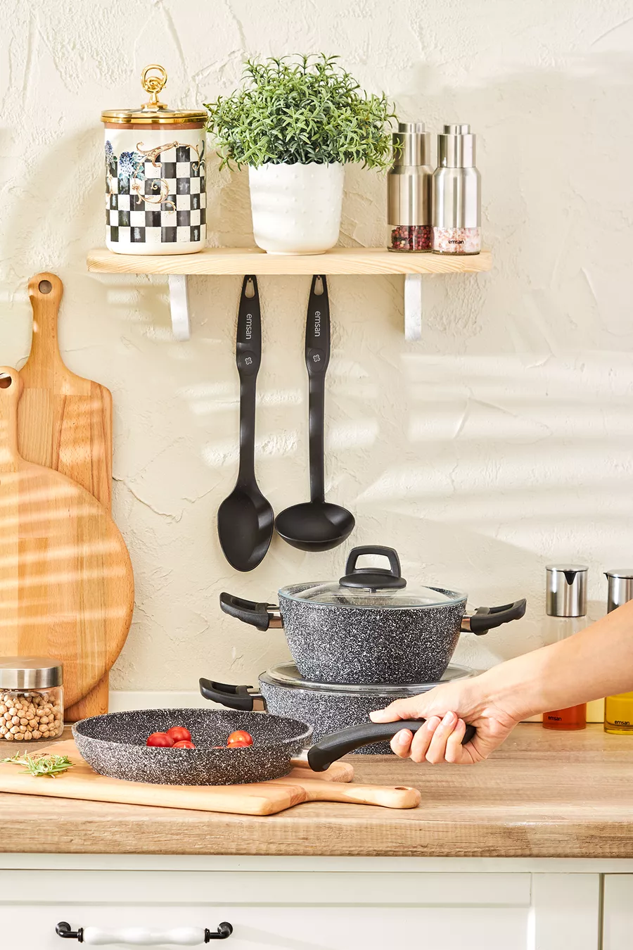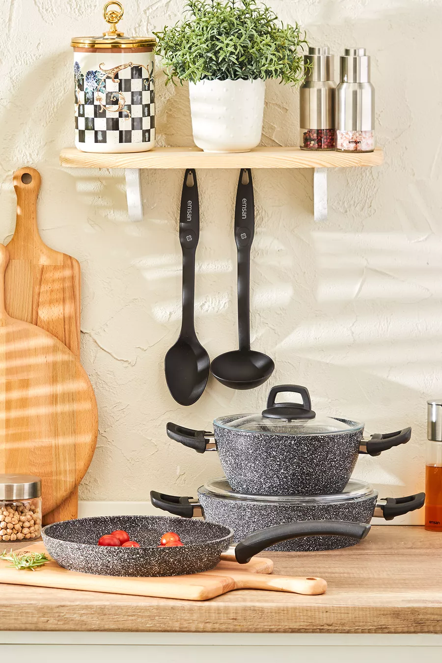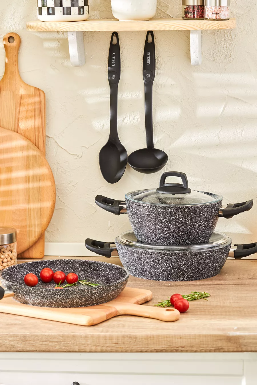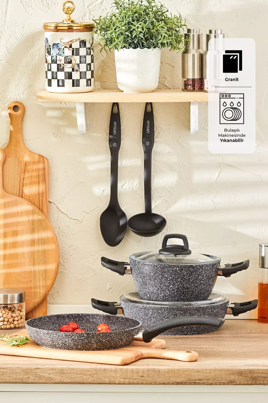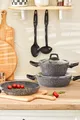 Kleur: Grijs Inhoud: 2,3 L Kenmerk: Anti-aanbakbodem Buitenmateriaal: Graniet Binnenmateriaal: Graniet Aantal onderdelen: 7 Oorsprong: TR Materiaal: Graniet