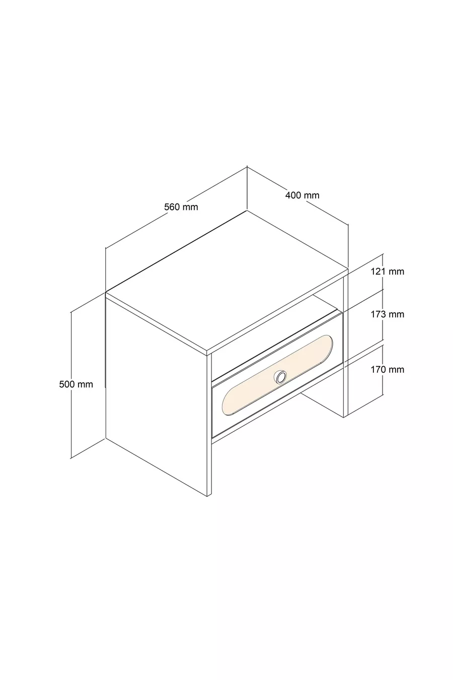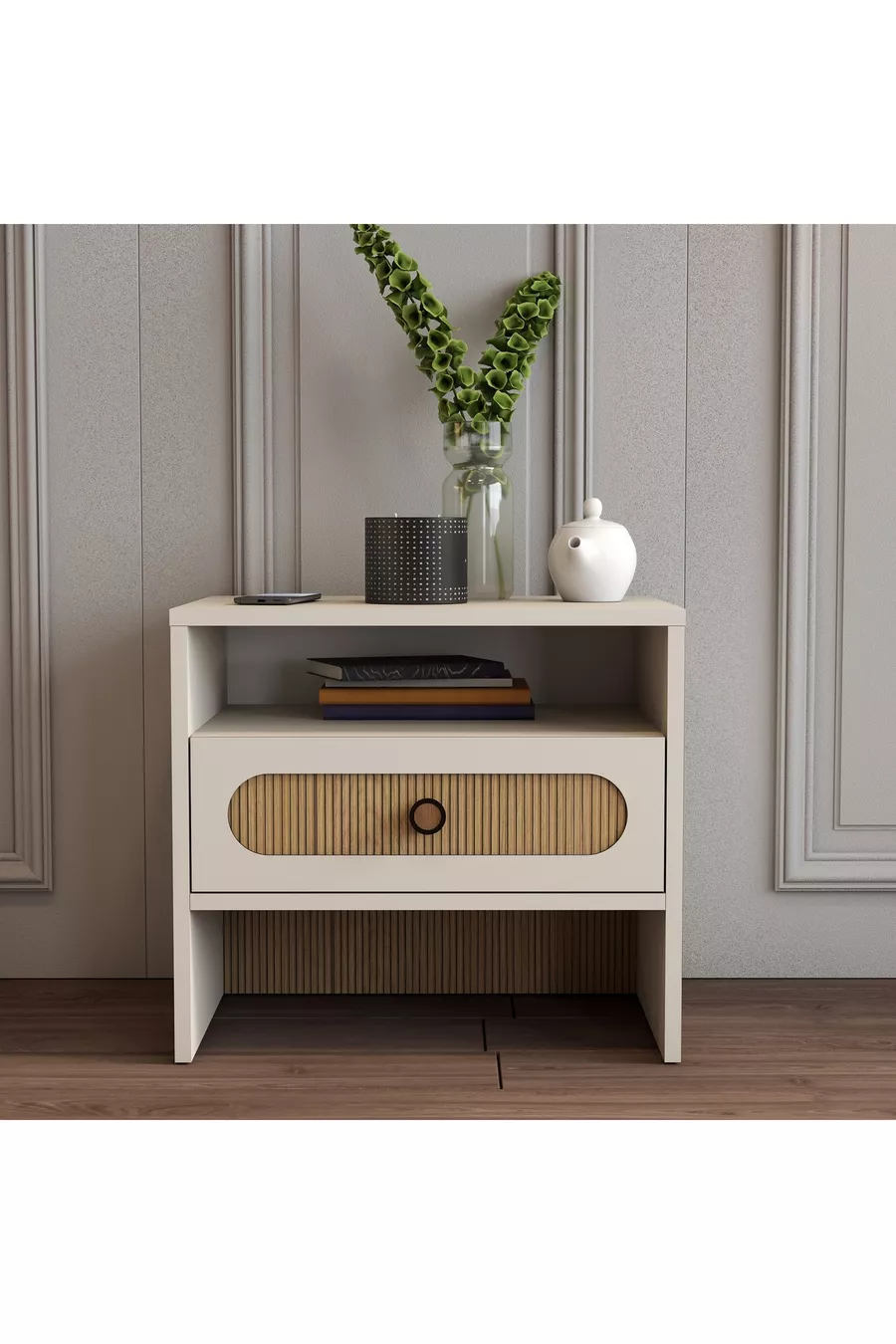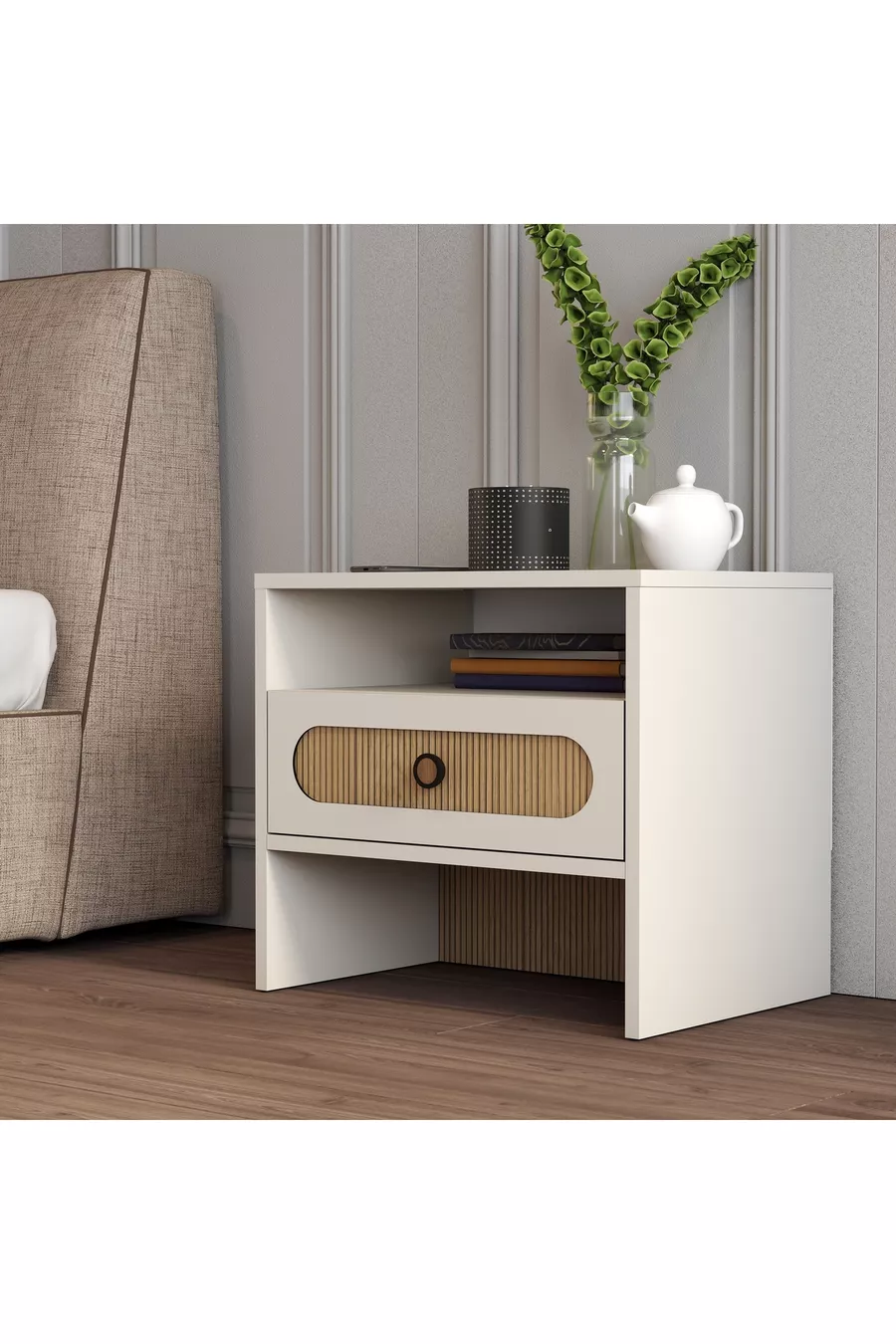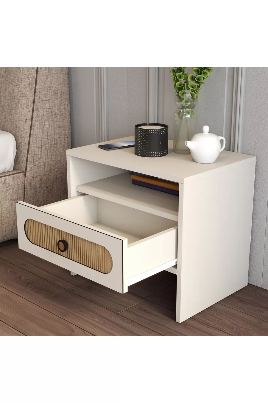 München Nachtkastje - Schaduwgestreept Eiken