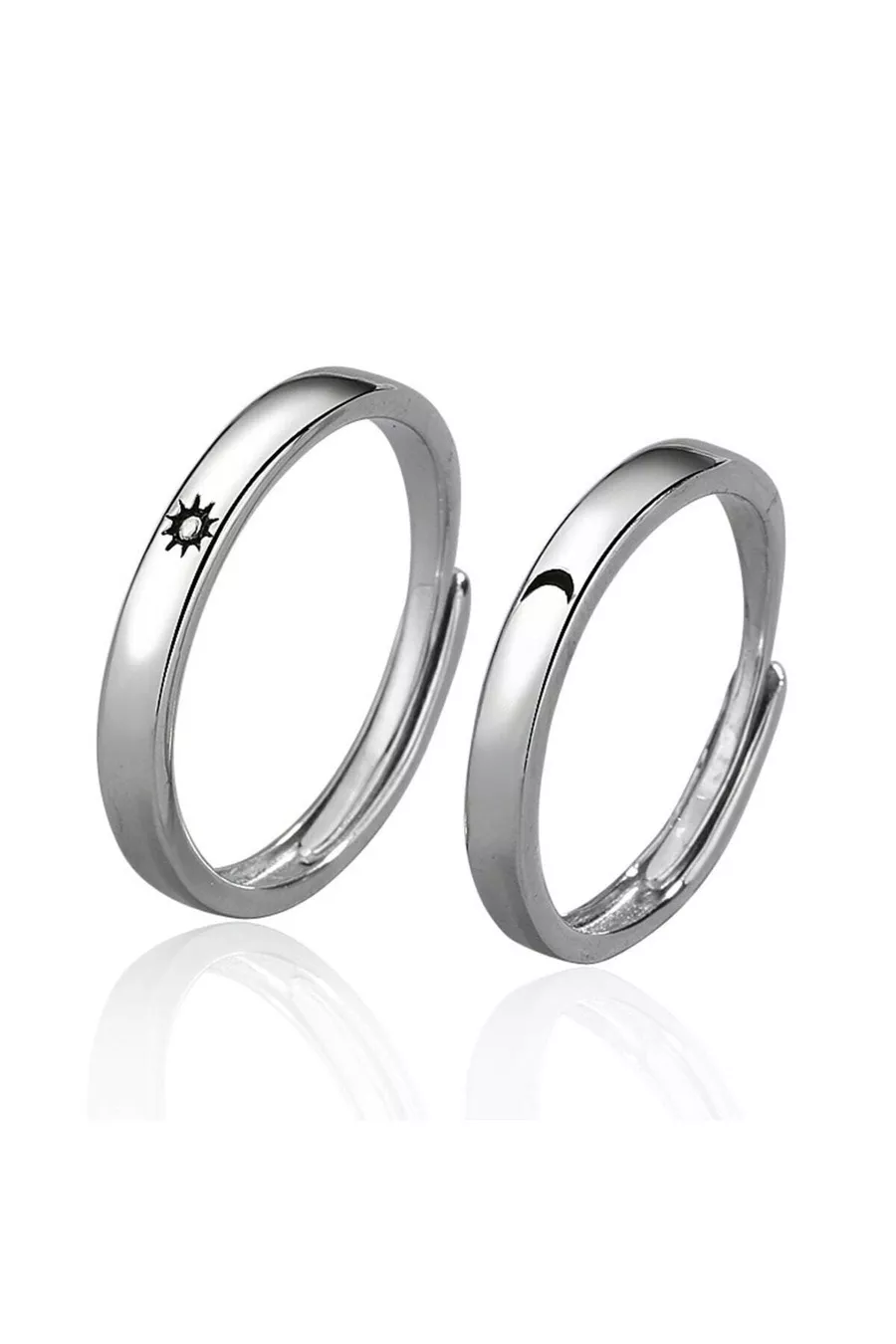 Maan en Ster Dubbele Trouwringen Set 2-delig Zilveren Verstelbare Ring