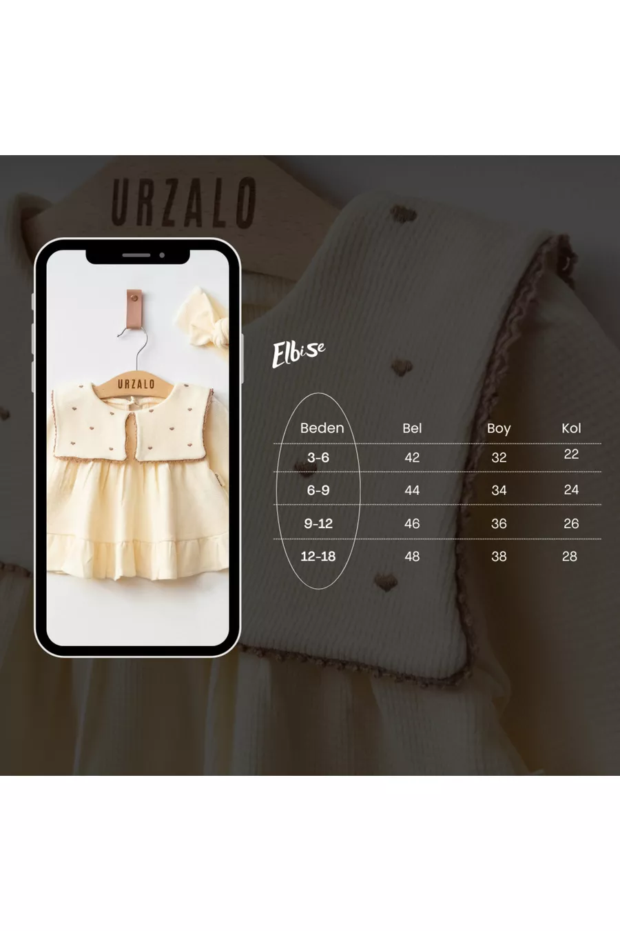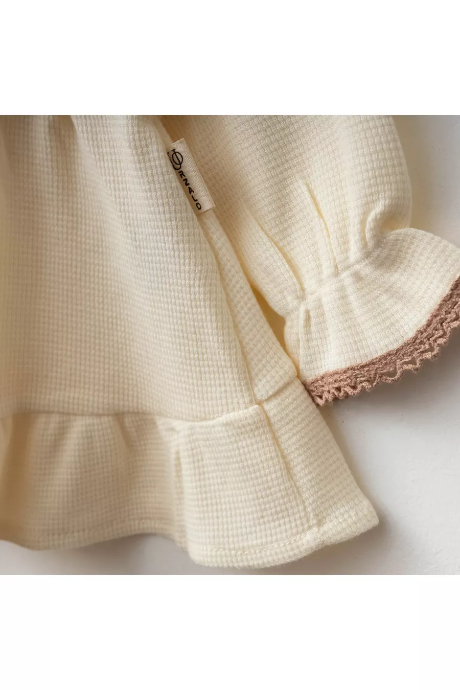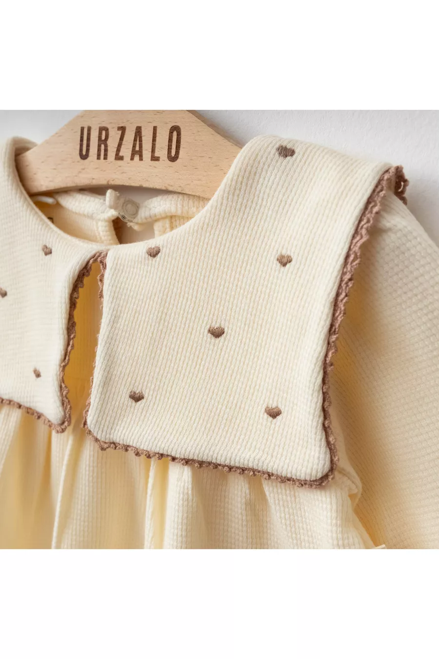 Maita Jurk met Hartborduursel, Vierkante Sjaalkraag, % Katoen Wafelstof, Kant en Bandana Meisjesbaby Set