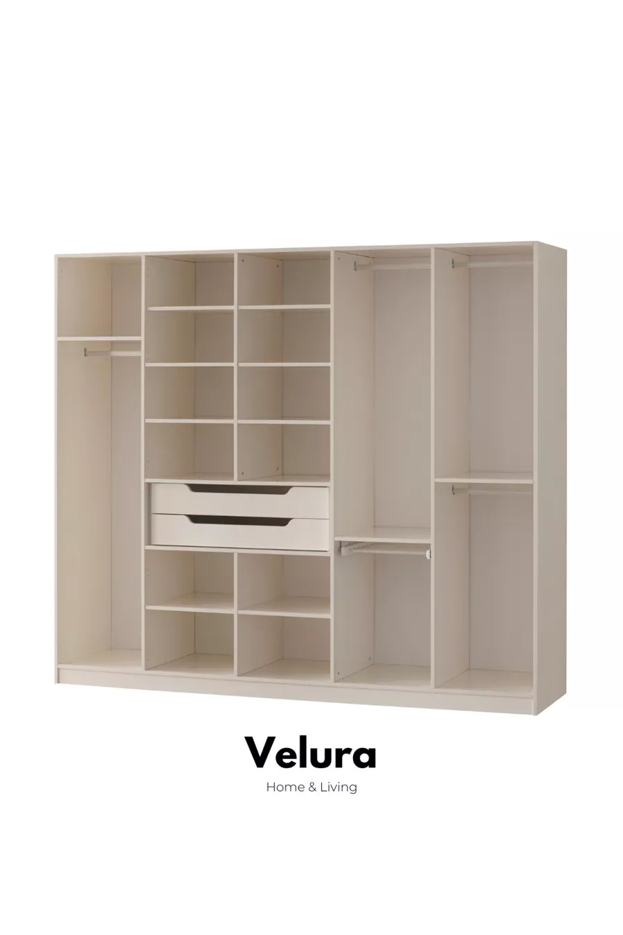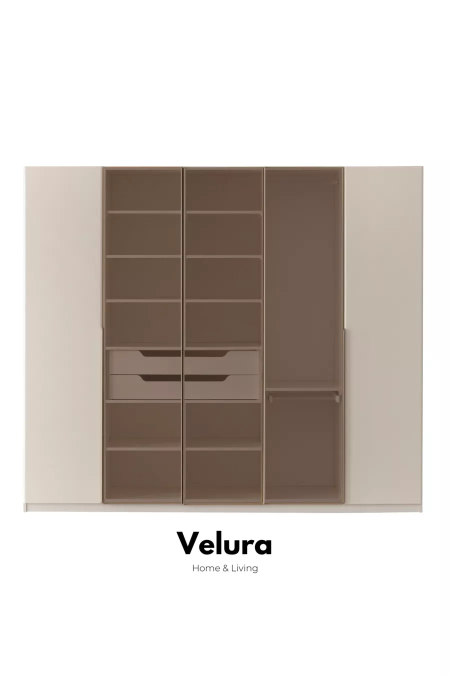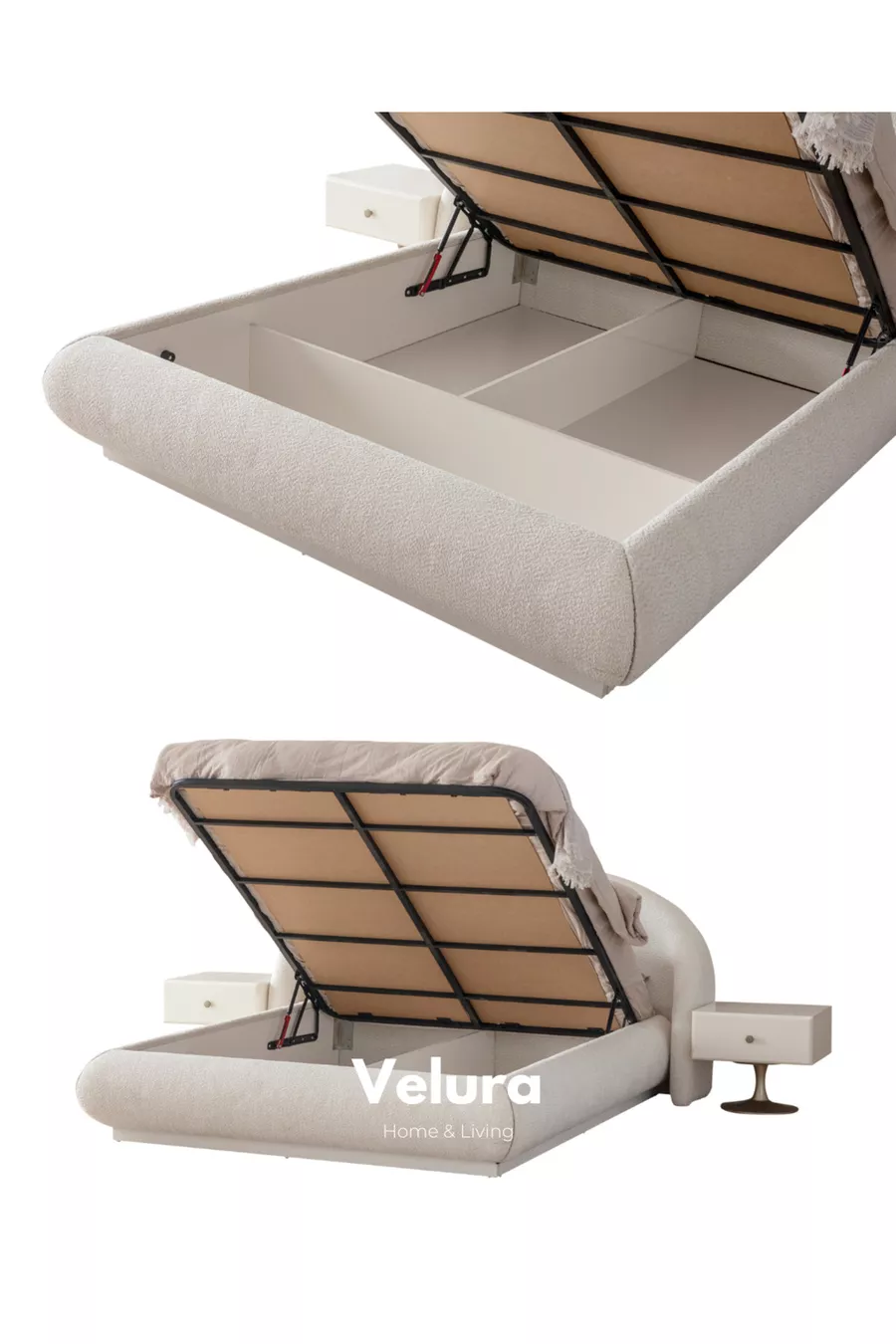 Setinhoud: Bed met opberglade + 2 nachtkastjes + ladekast + kast