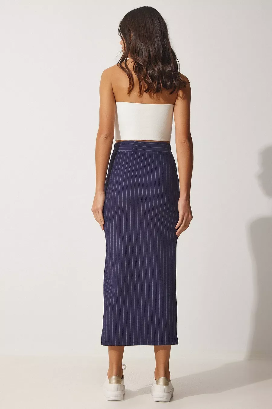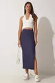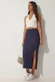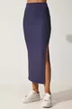 Marineblauwe gebreide kokerrok met haarlijnspleet voor dames