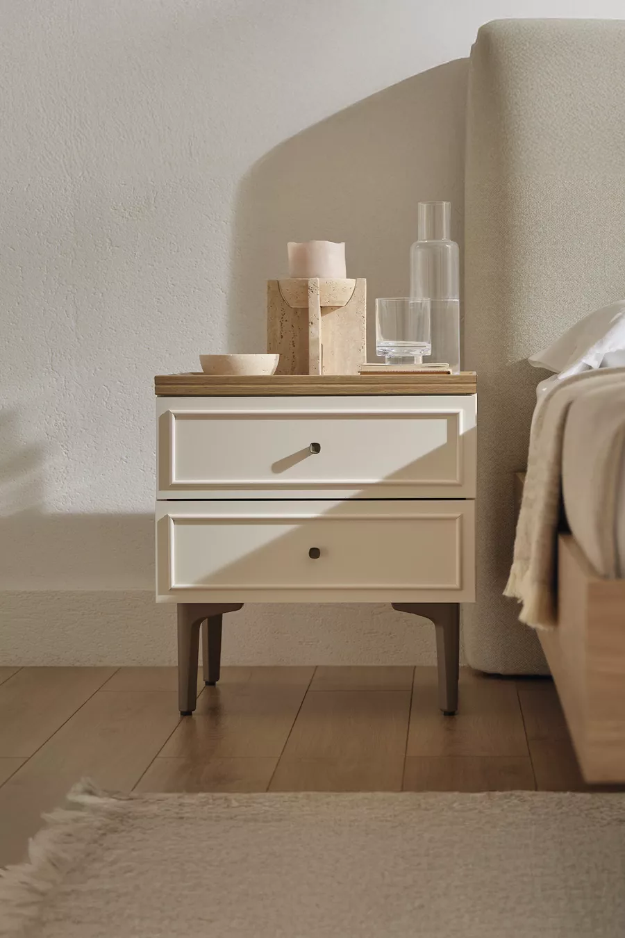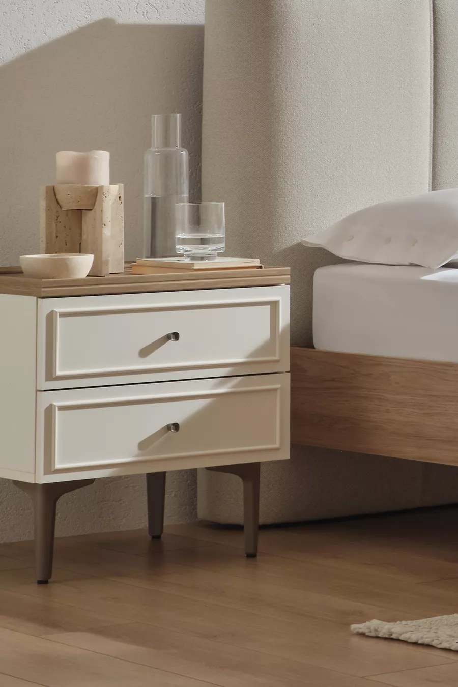Materiaal: MDF Kleur: Ecru Garantieperiode: 2 jaar Aantal lades: 2 Hoogte: 58 cm Breedte: 54 cm Diepte: 47 cm Stijl: Modern Thema / Stijl: Modern Herkomst: TR Kenmerk: Met lades