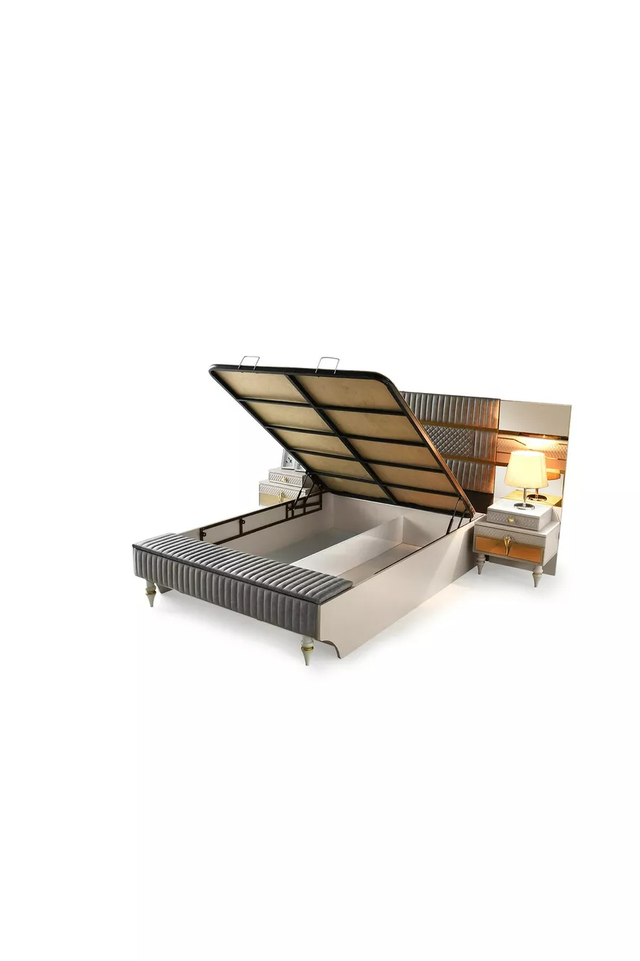 Marsilya MDF Slaapkamer Set met Bedbodem + Bank