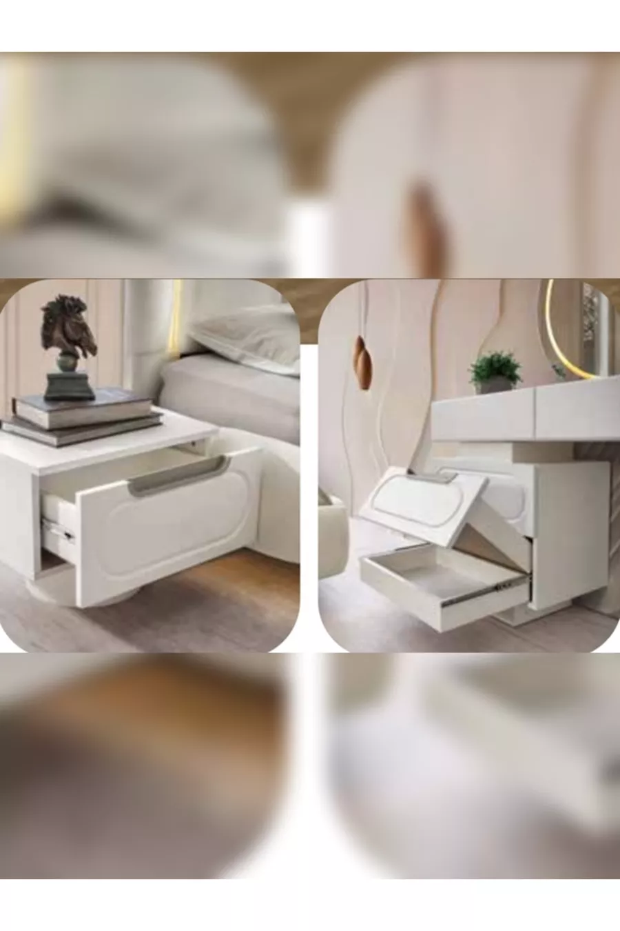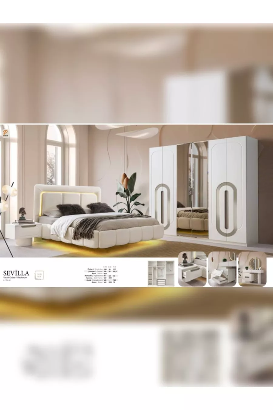 Kleur: Wit Bedframe/Maat: 160 x 200 Bedframe Functie: Zonder lade Kast Functie: Met spiegel Materiaal kastlichaam: MDF Aantal deuren: 6 Set Inhoud: Kast + 2 nachtkastjes + ladekast + hoofdbord Stijl: Modern Thema/Stijl: Modern Herkomst: TR
