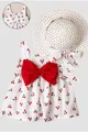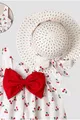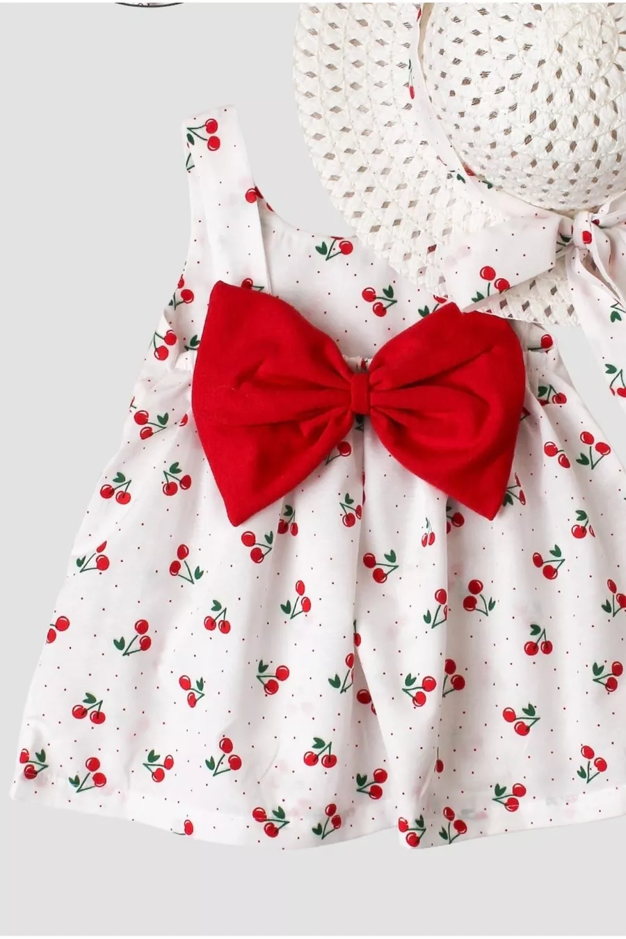 Meisjesbabyjurk met kersenprint, hoed en strik