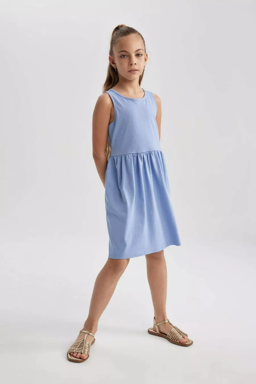 Meisjesfiets Hals Basic Effen Mouwloze Zomerse Jurk SM