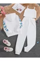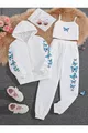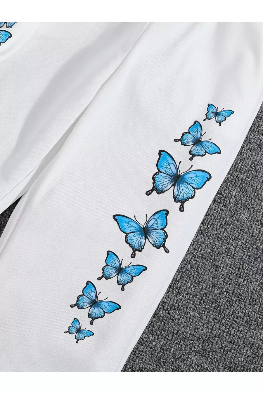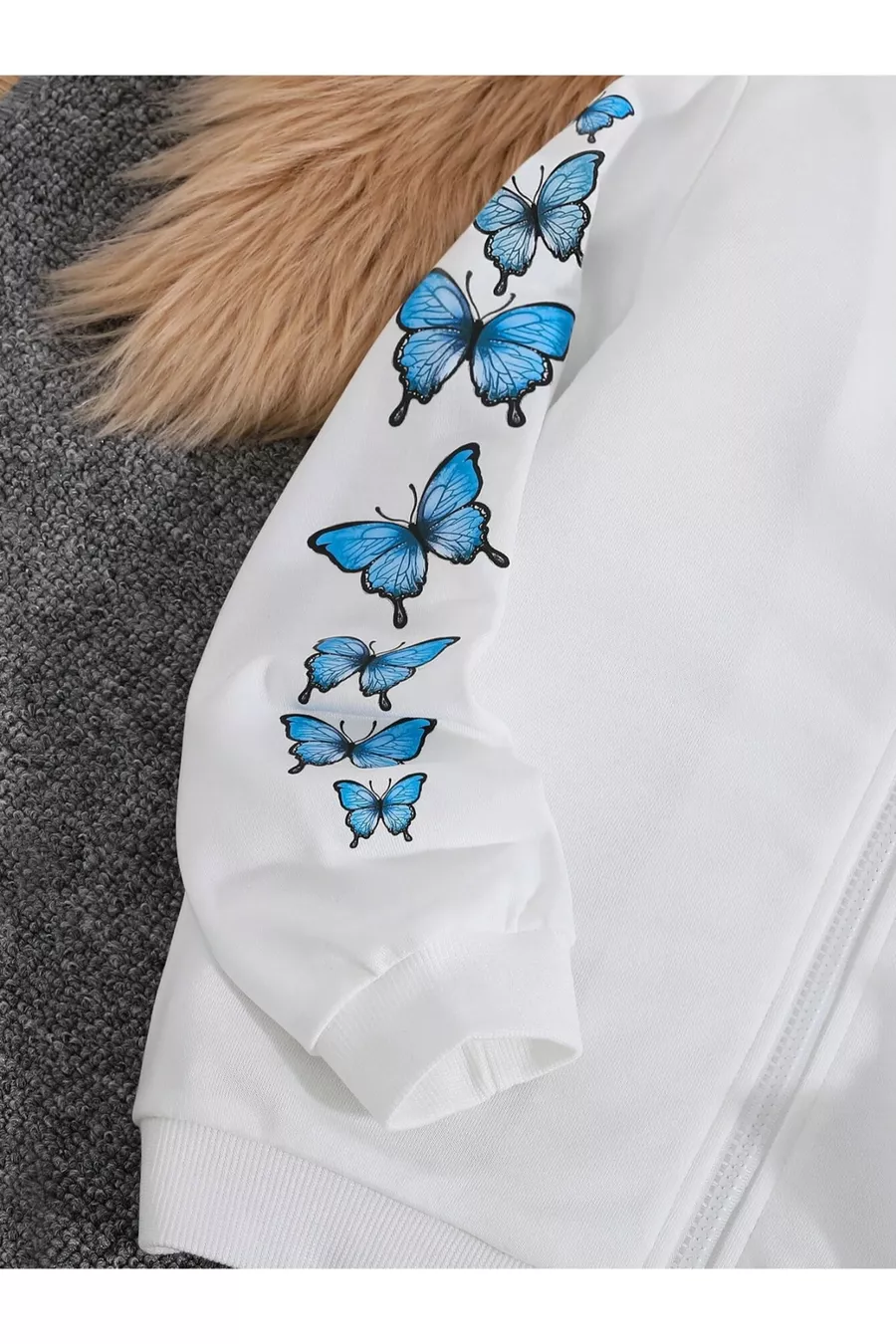 Meisjesjack met rits, crop top en trainingspak met witte vlinderprint