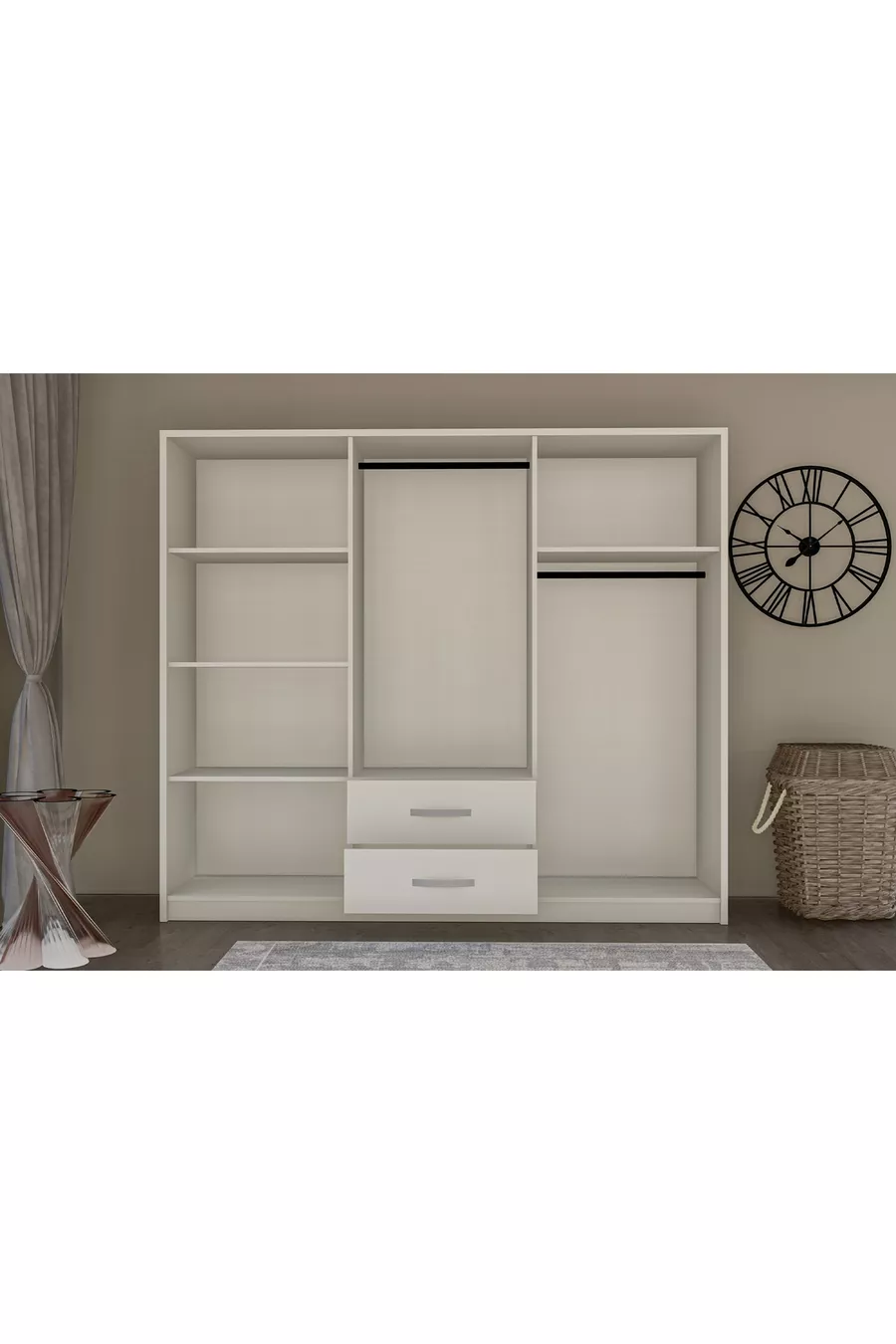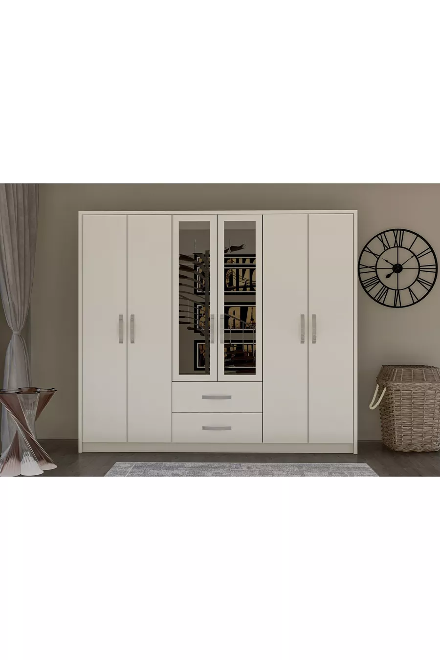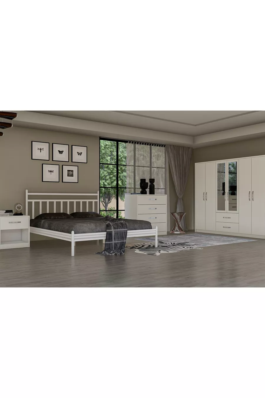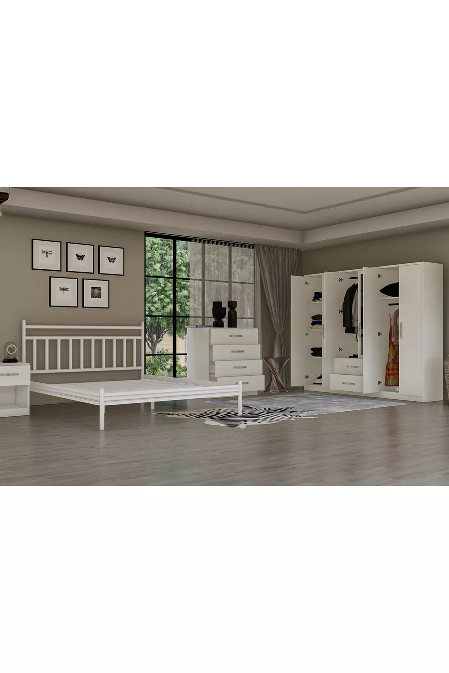Setinhoud: Kast + 2 nachtkastjes + ladekast + hoofdbord voor bed