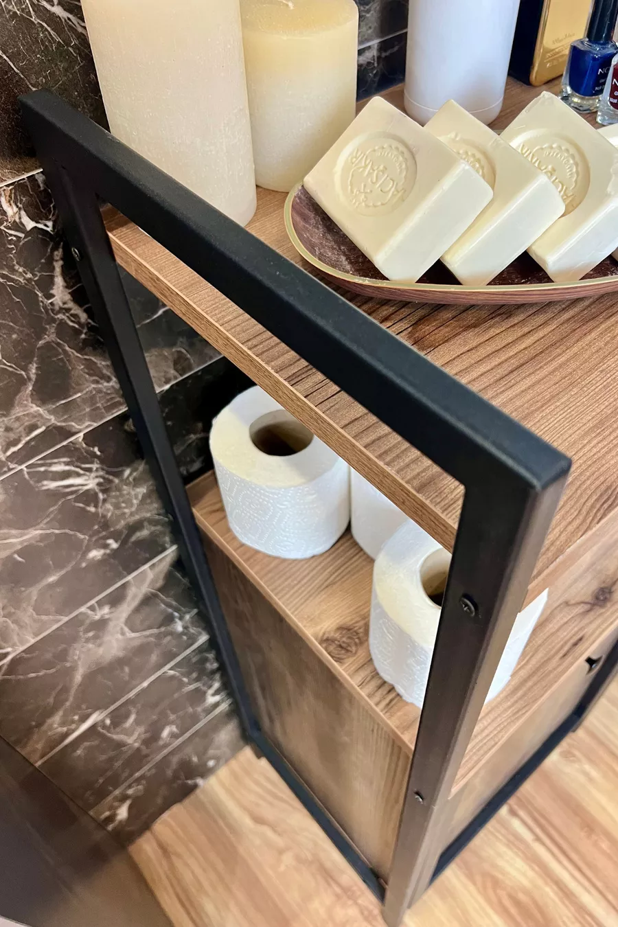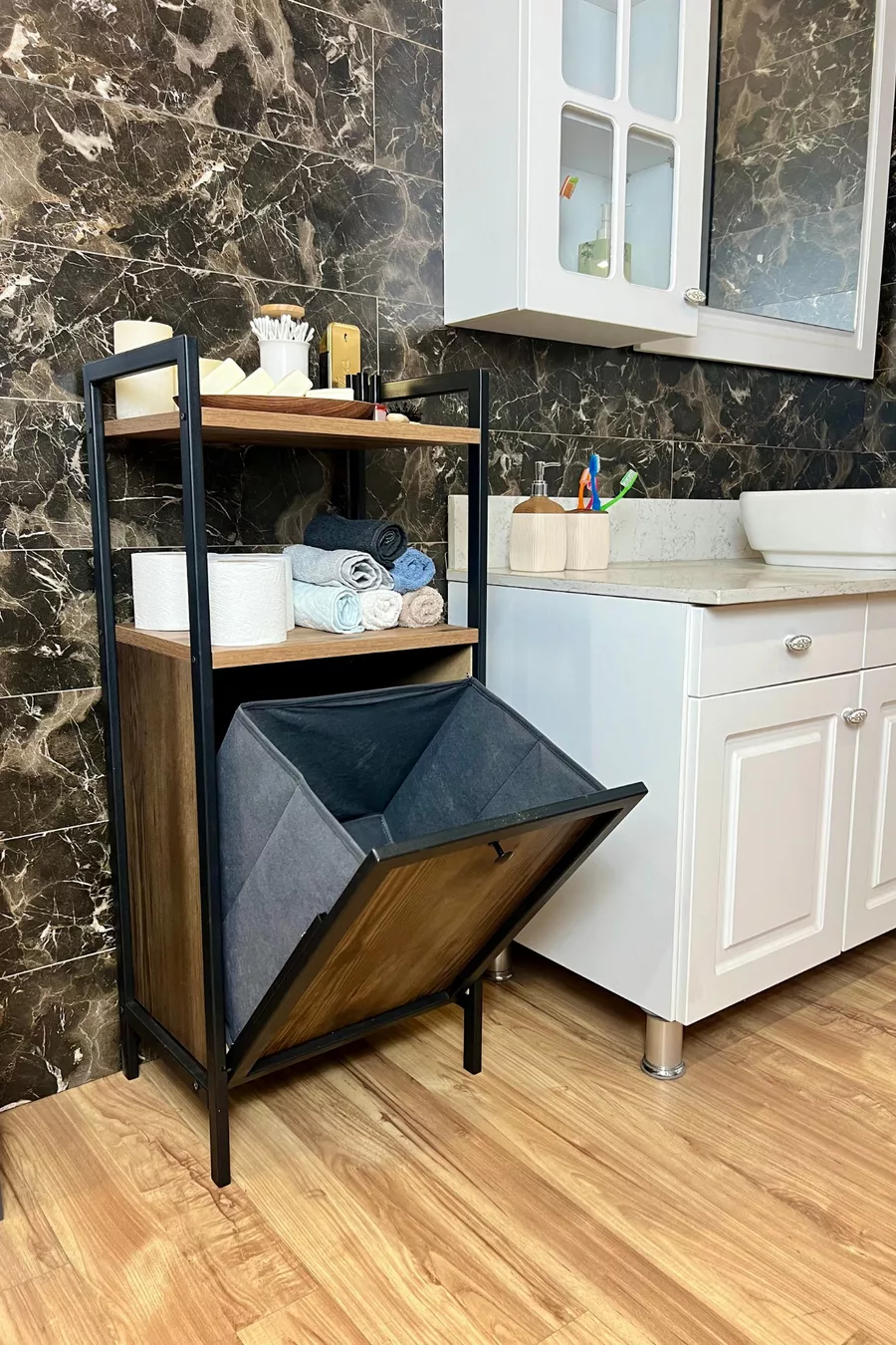 Aantal deuren: 1 Materiaal: Metaal Kleur: Bruin Aantal lades: 1 Functie: Met mand Kastafmetingen: 36 x 47 Model: Open plank Stijl: Modern Thema / Stijl: Modern Herkomst: TR Kenmerk: Met plank