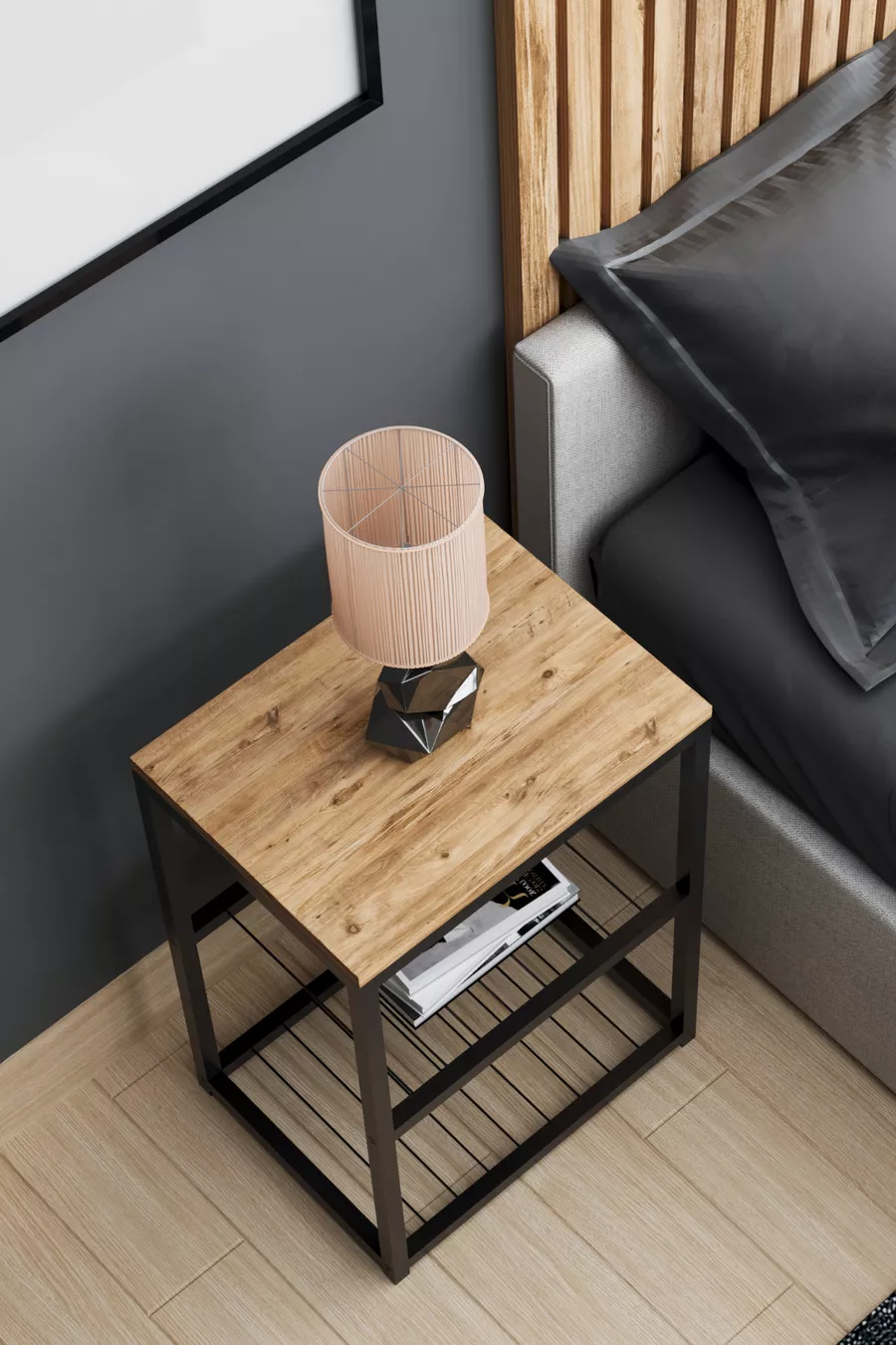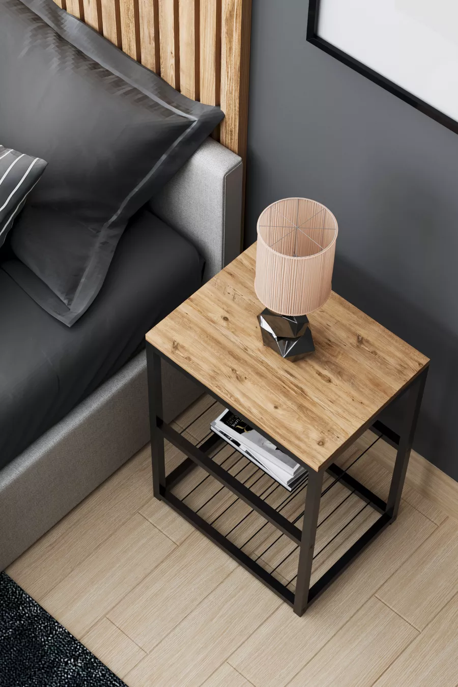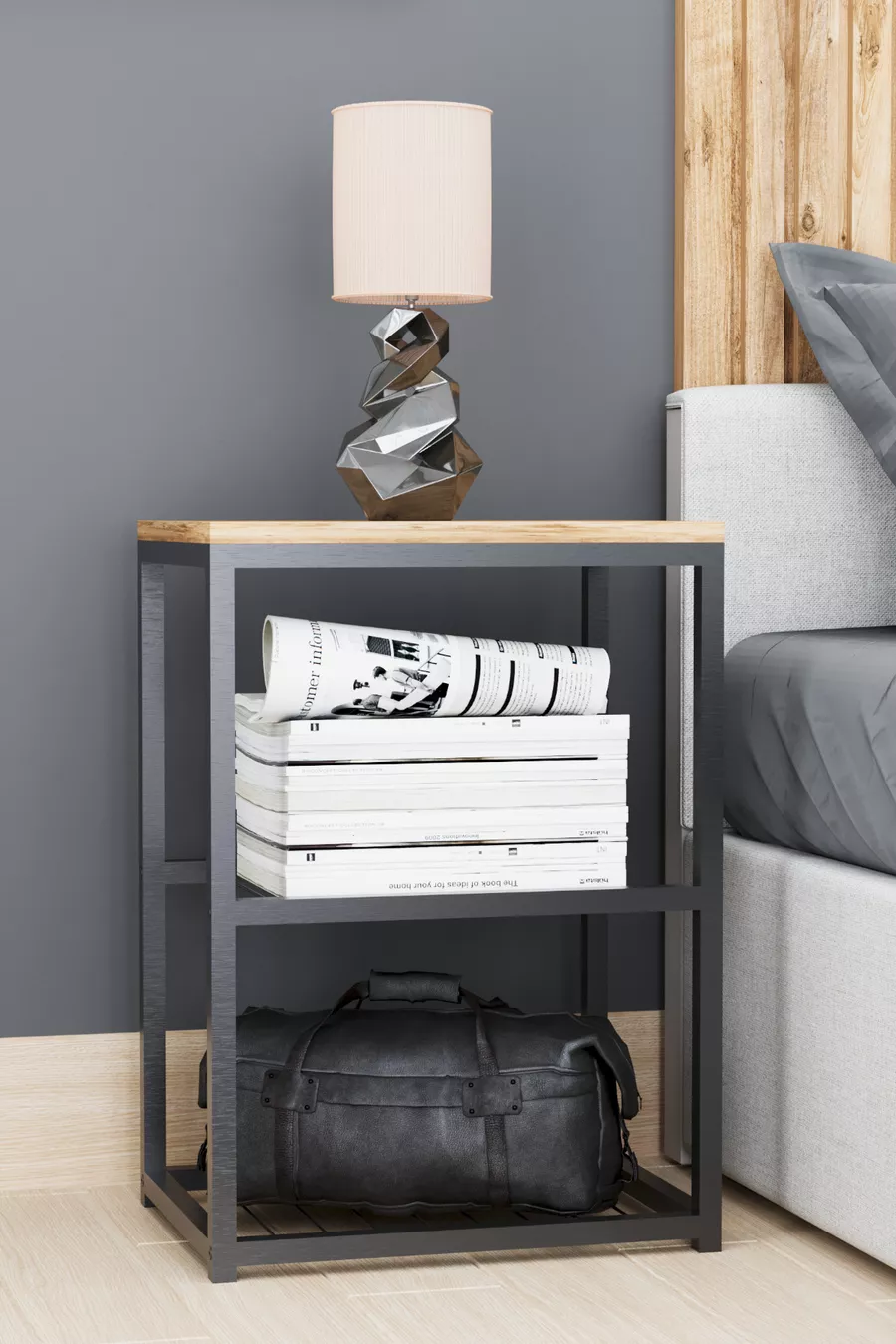 Metalen Nachtkastje met Decoratief Draadplankje en Poten