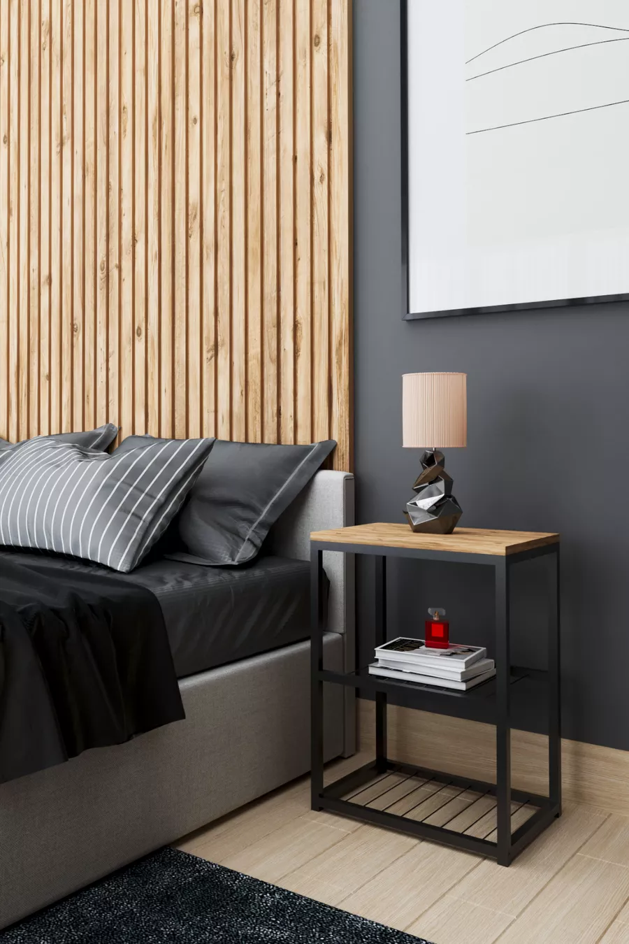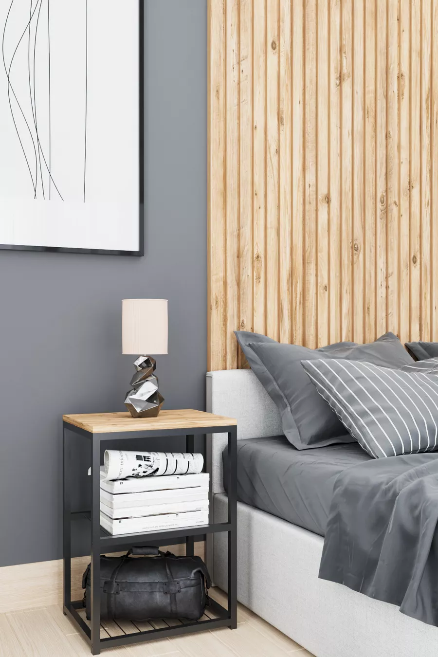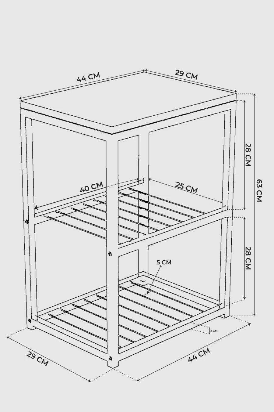 Metalen Nachtkastje met Decoratief Draadplankje en Poten