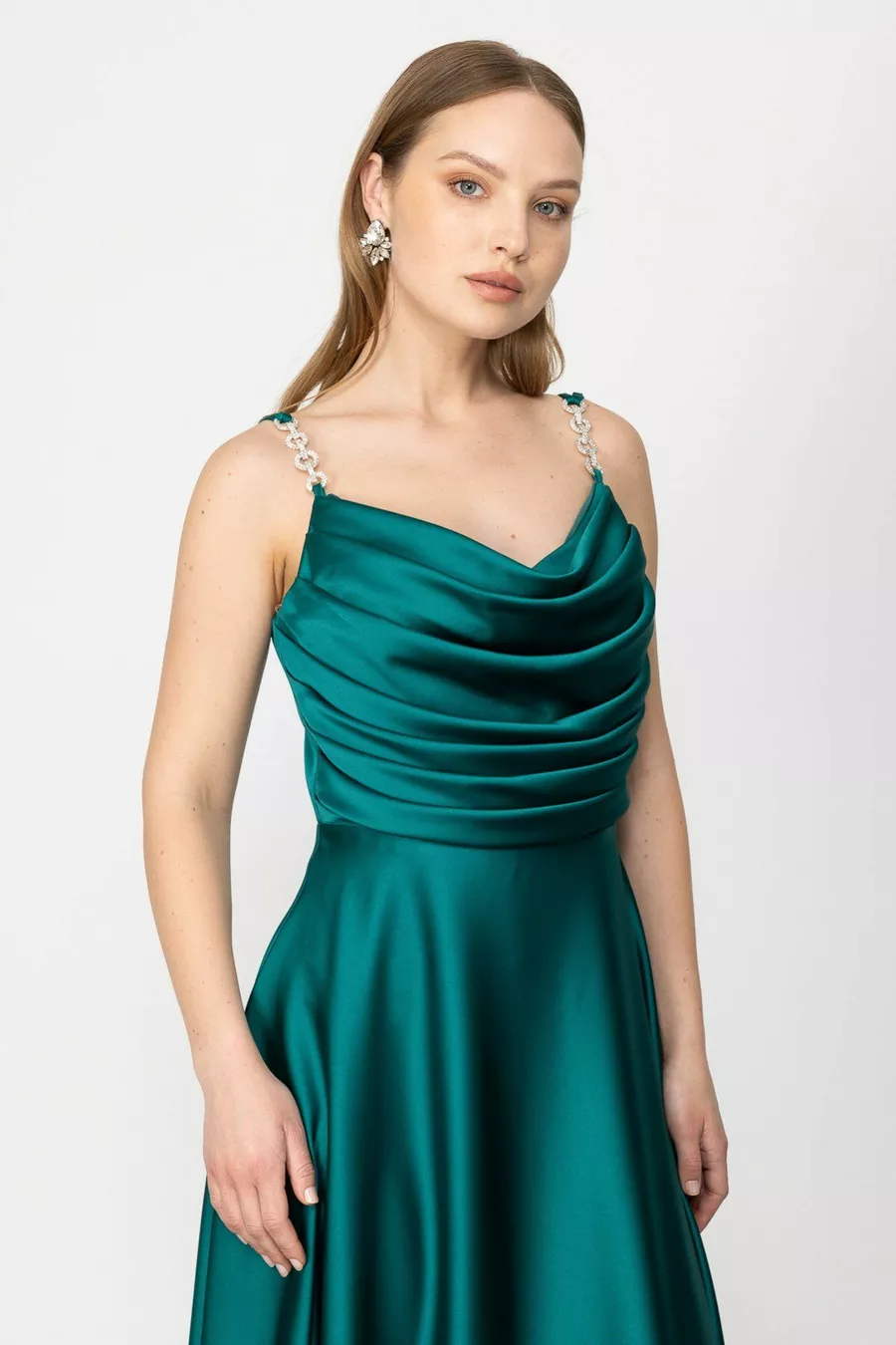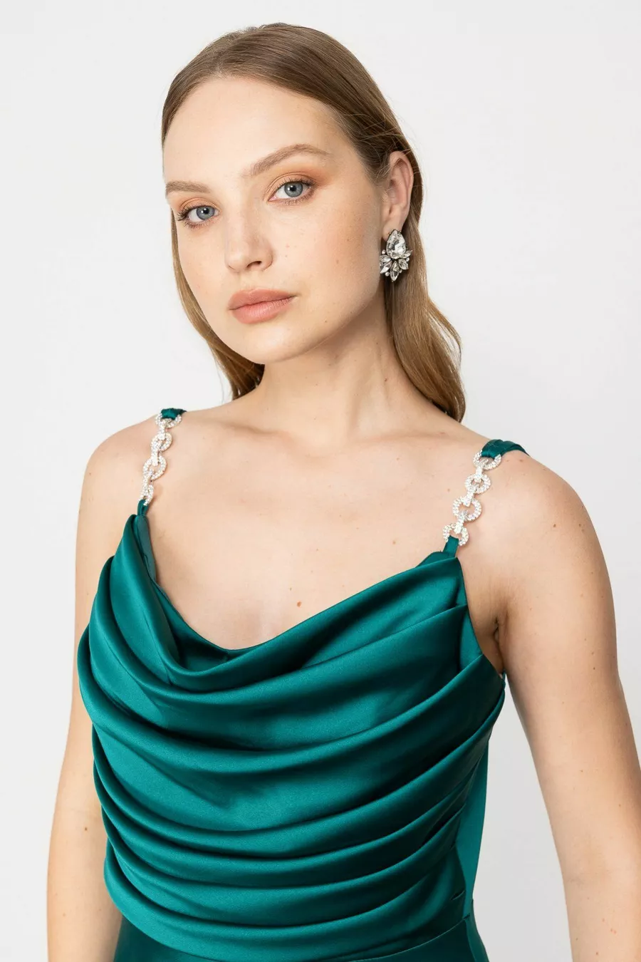 Mi Stone Strap Degaje Hals Satijnen Jurk