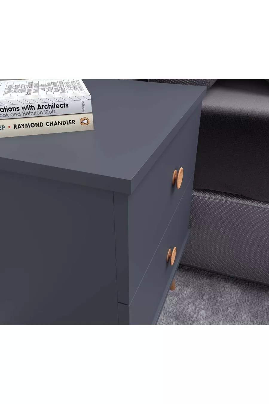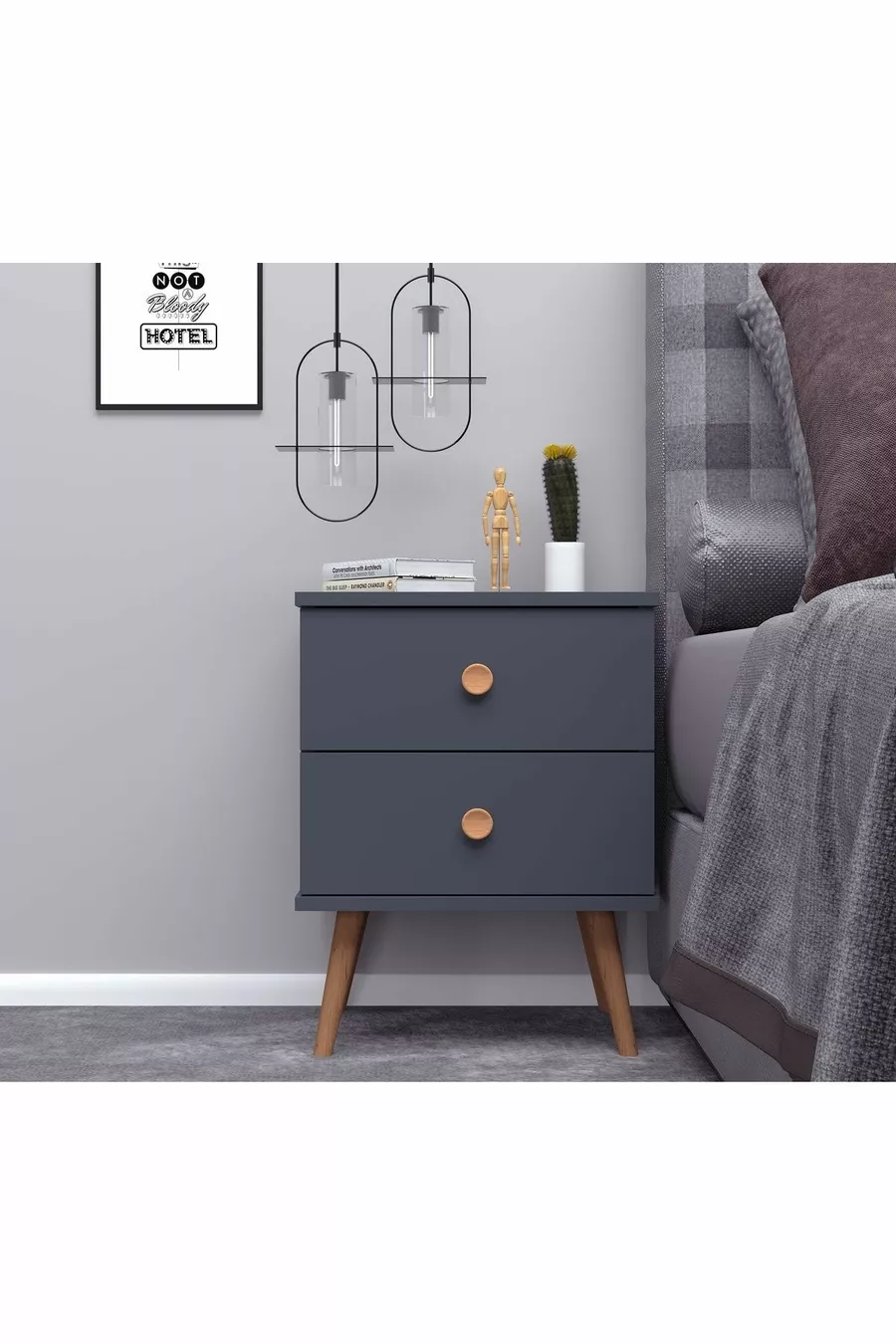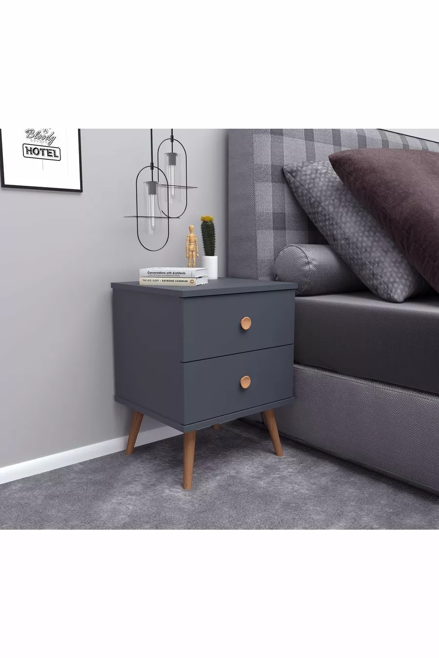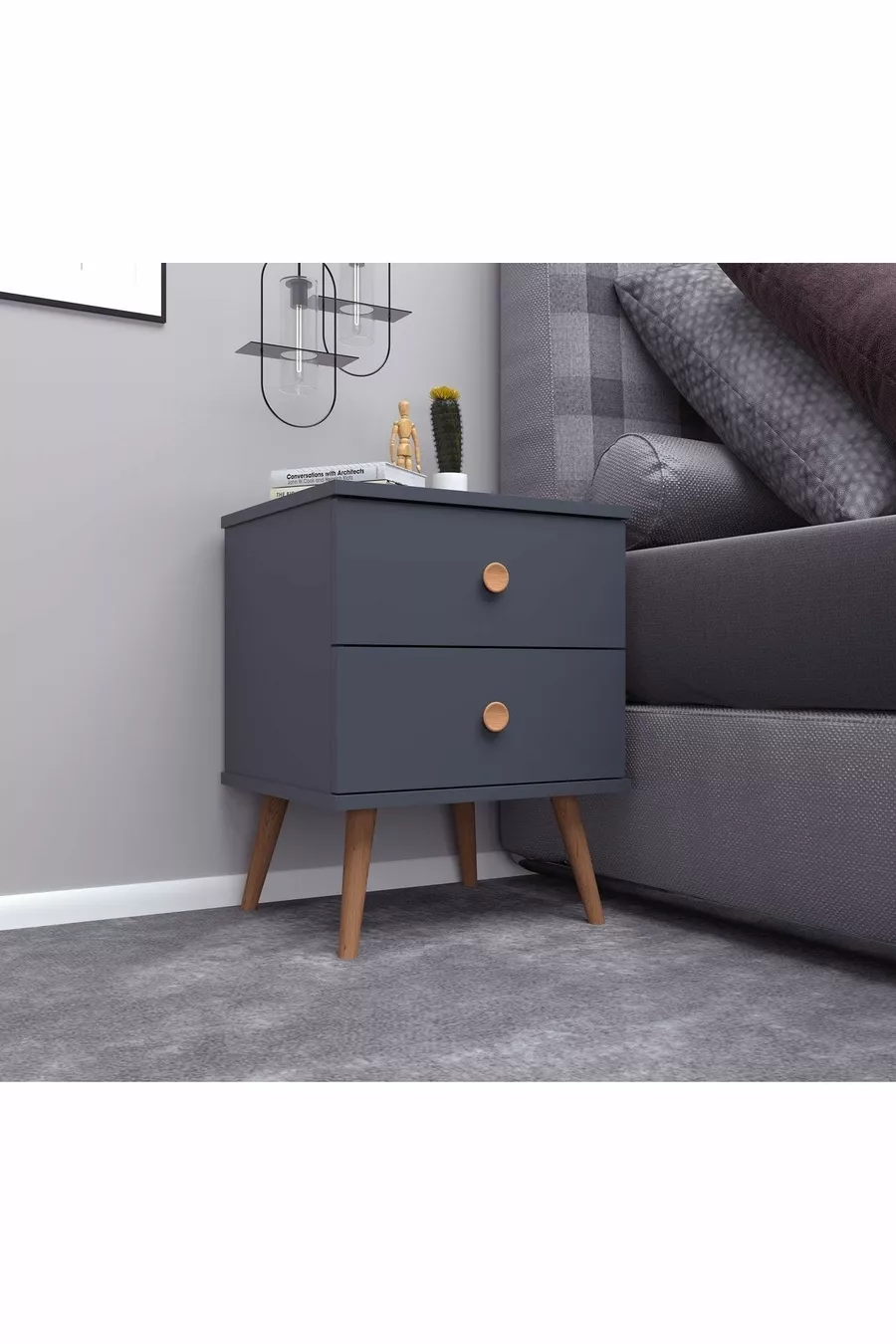 Materiaal: Suntalam Kleur: Grijs Garantietermijn: 2 jaar Aantal lades: 2 Hoogte: 55 cm Breedte: 40 cm Diepte: 39 cm Stijl: Scandinavisch Thema / Stijl: Scandinavisch Herkomst: TR Kenmerk: Met poten