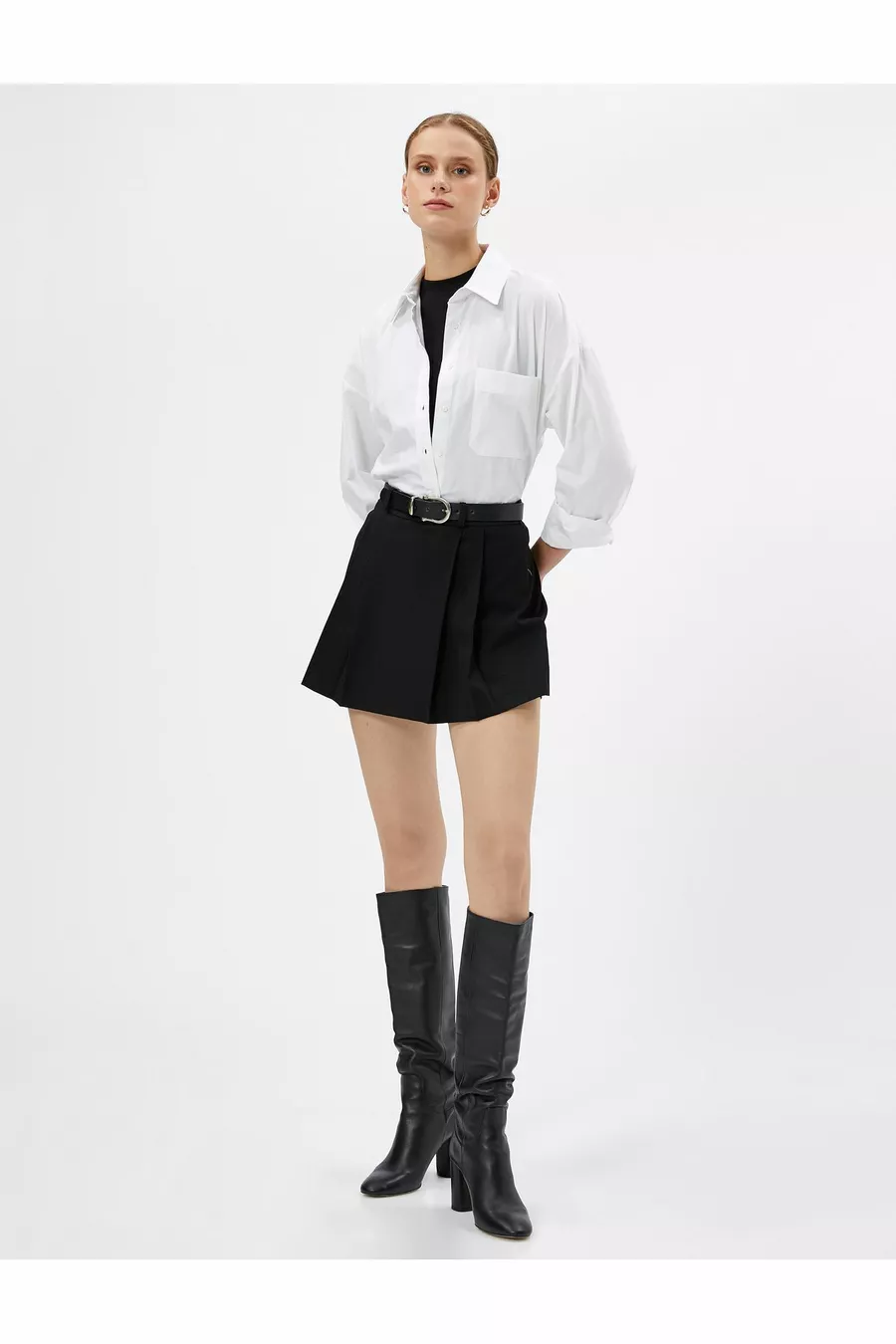 Mini Shorts Rok Geplooide Riem Gedetailleerde Viscose Mix