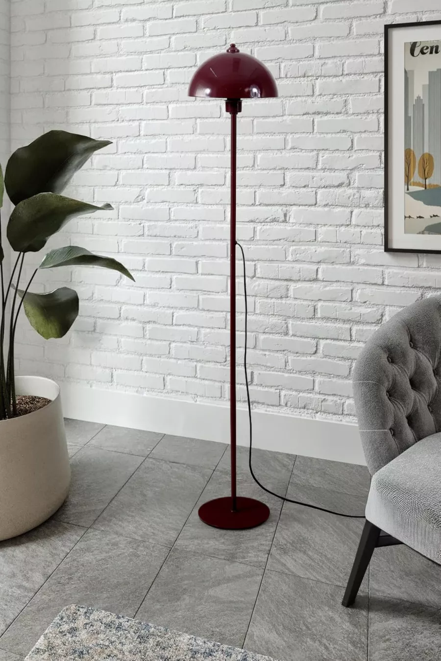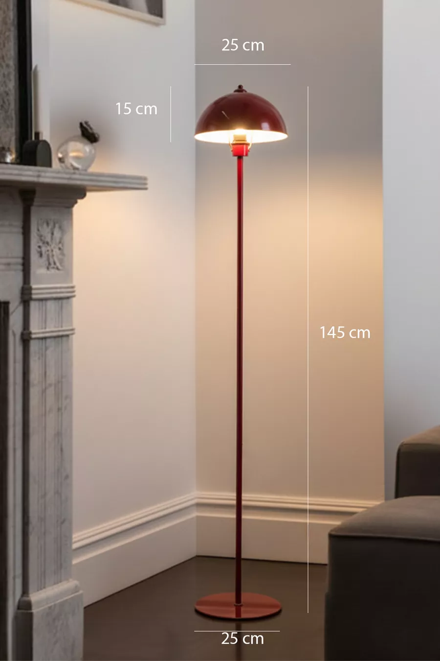 Model: Enkelpoot Kleur: Bordeaux Materiaal: Metaal Aantal lampfittingen: 1 Type fitting: E27 Hoogte vanaf de grond: 101-150 cm Herkomst: TR Kenmerk: Rond
