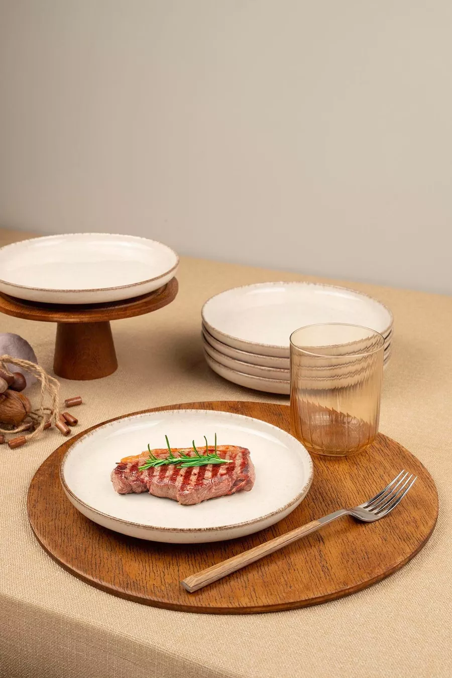 Materiaal: Porselein Aantal stuks: 6 Kleur: Beige Afmeting/Formaat: 19 x 19 Kenmerk: Geschikt voor magnetron Thema / Stijl: Modern Vorm: Rond Producttype: Theeschotel Herkomst: TR