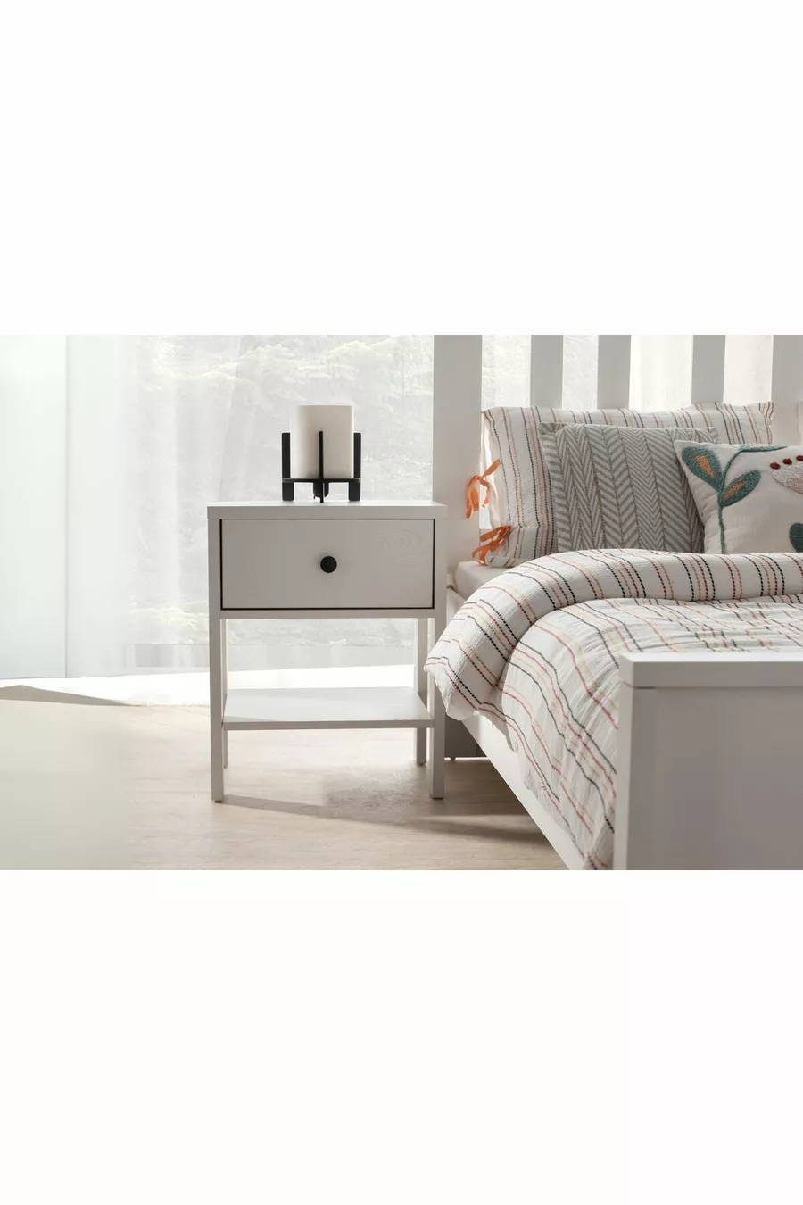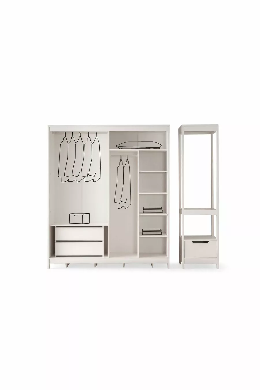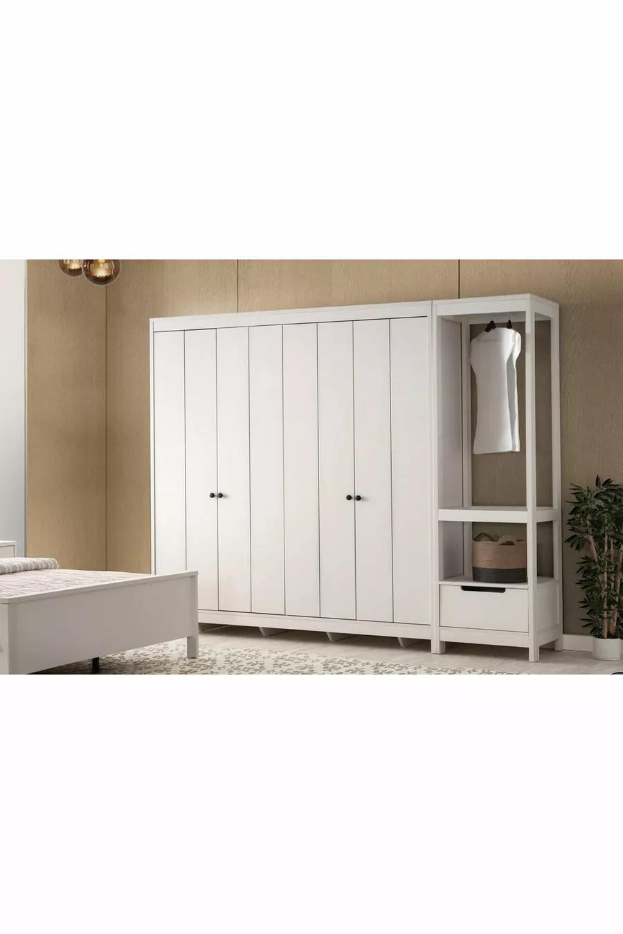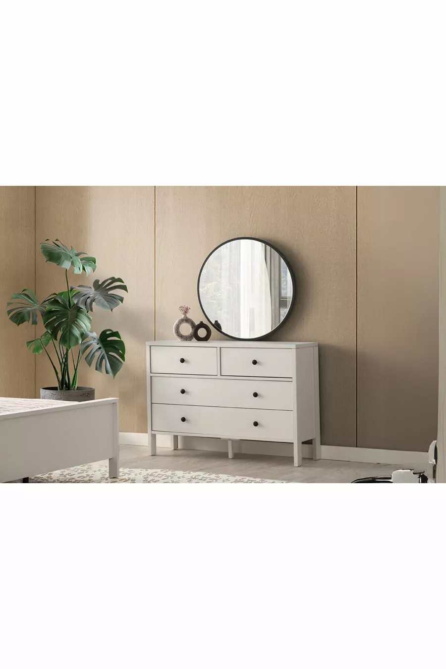 Setinhoud: Bed + 2 nachtkastjes + ladekast + kast + spiegel