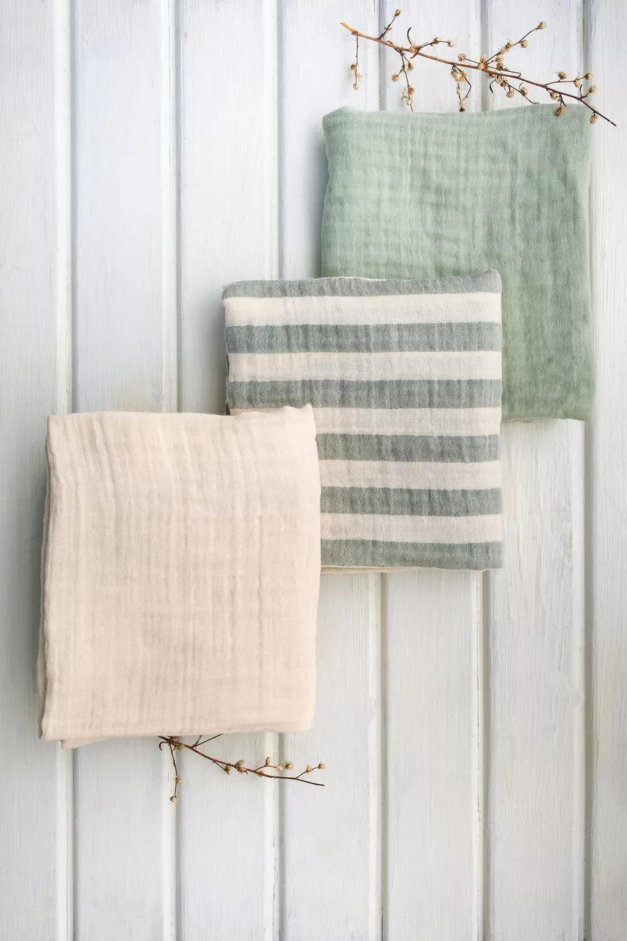Materiaal: Katoen Gewicht: 0 - 0,99 kg Kleur: Groen Afmeting/Size: 70 x 80 Patroon: Dierenprint Eigenschap: Ademend Materiaal Samenstelling: 100% katoen Wasinstructies: Machinewasbaar op 30°. Pakket Inhoud: Set van 3 Oorsprong: TR