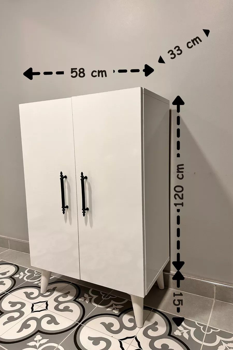 Functie: Met deksel Kleur: Wit Breedte: 58 cm Diepte: 33 cm Aantal deksels: 2 Materiaal van het lichaam: Spaanplaat Spiegel functie: Zonder spiegel Stijl: Klassiek Thema / Stijl: Klassiek Kenmerk: Lang