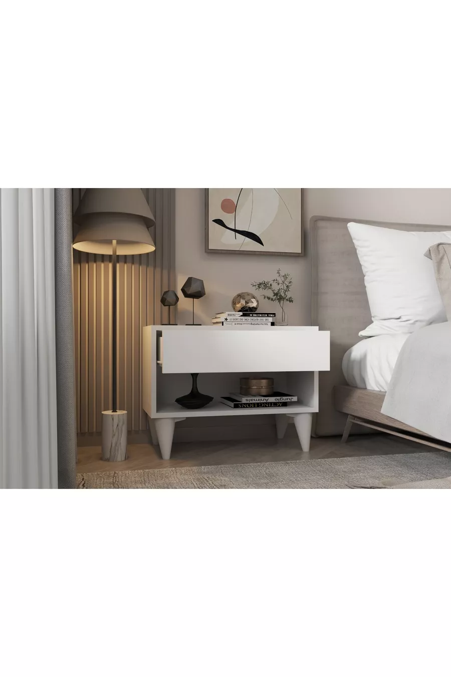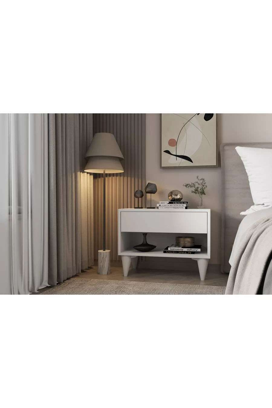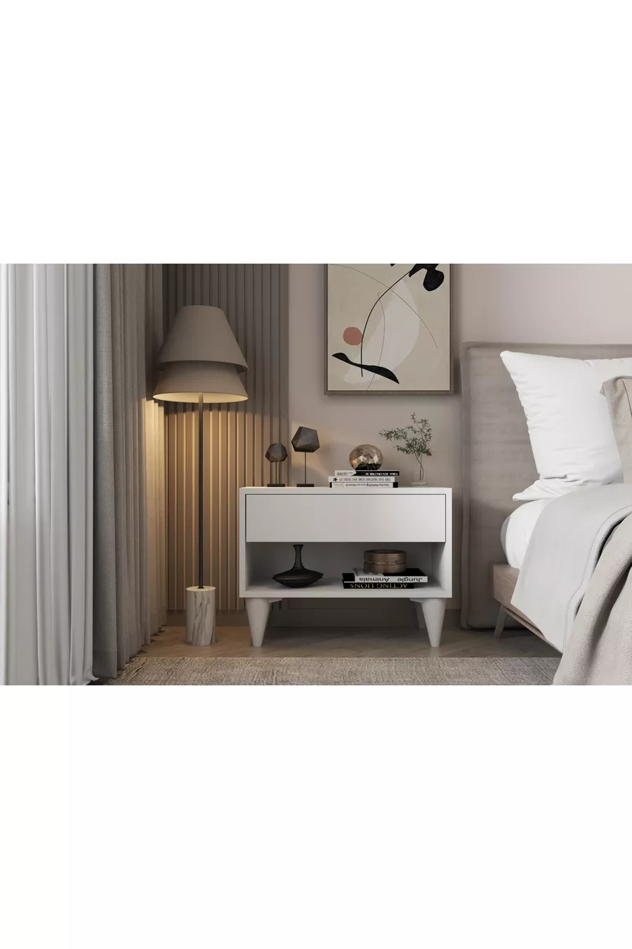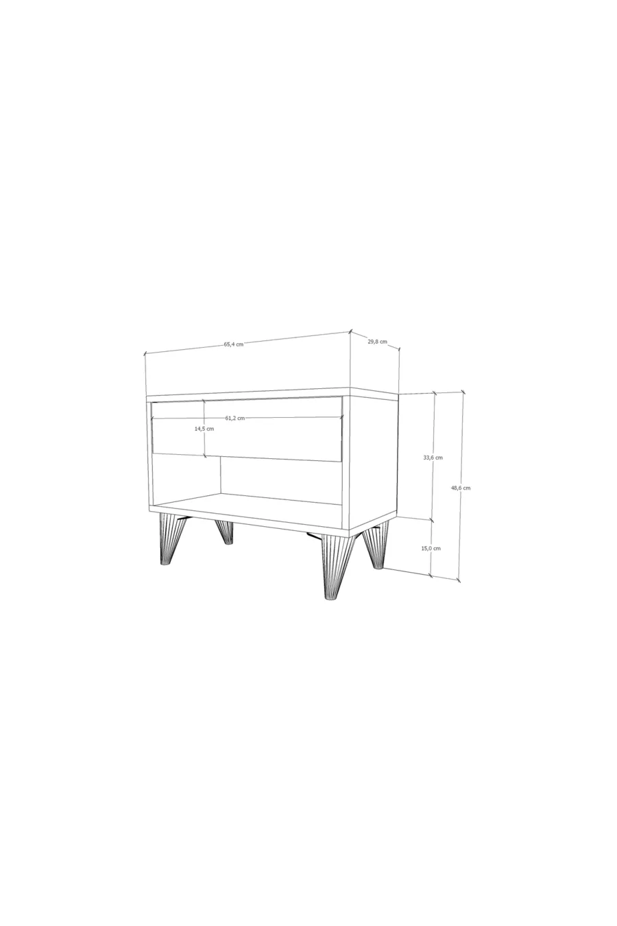 Materiaal: Suntalam Kleur: Wit Garantieperiode: 6 maanden Aantal lades: 1 Hoogte: 49 cm Breedte: 65 cm Diepte: 30 cm Stijl: Scandinavisch Thema / Stijl: Scandinavisch Oorsprong: TR Kenmerk: Met poten