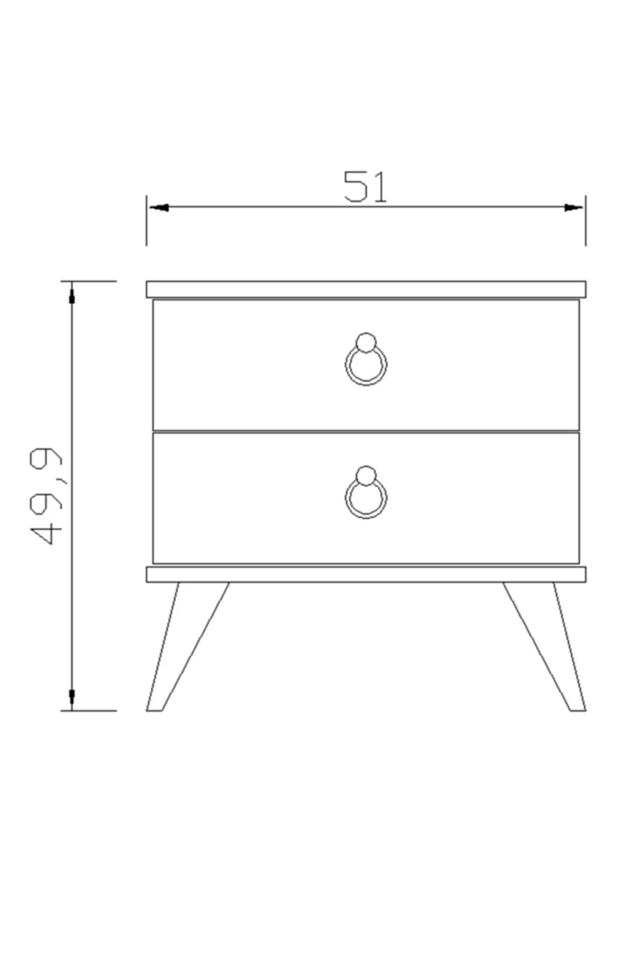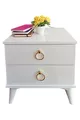 Materiaal: Hout Kleur: Wit Garantieperiode: 2 jaar Aantal lades: 2 Hoogte: 50 cm Breedte: 51 cm Diepte: 40 cm Stijl: Retro Kenmerk: Met lades