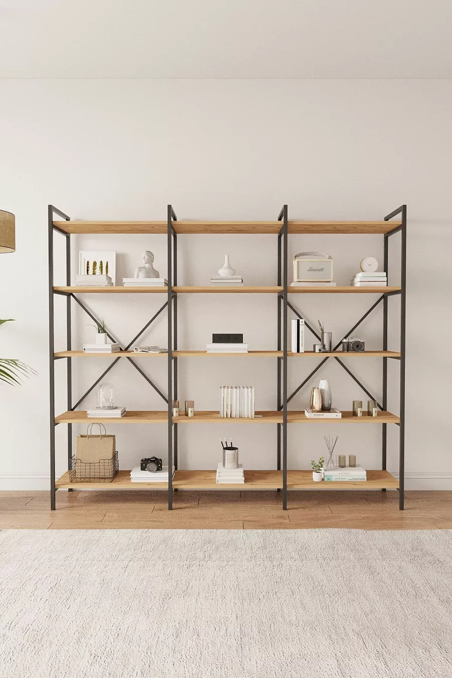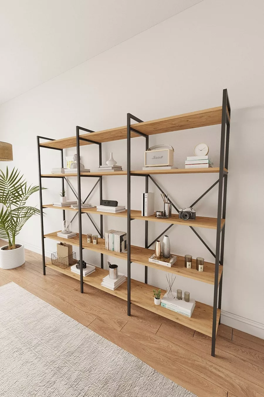Tip: Klassiek Materiaal: Spaanplaat Kleur: Bruin Hoogte: 170 cm Breedte: 200 cm Diepte: 34 cm Aantal planken: 16 Materiaal kast: Spaanplaat Stijl: Scandinavisch Thema / Stijl: Scandinavisch Kenmerk: Met plank