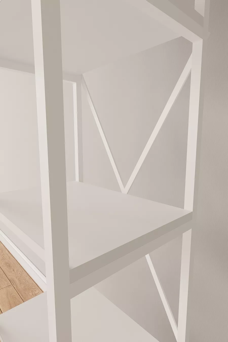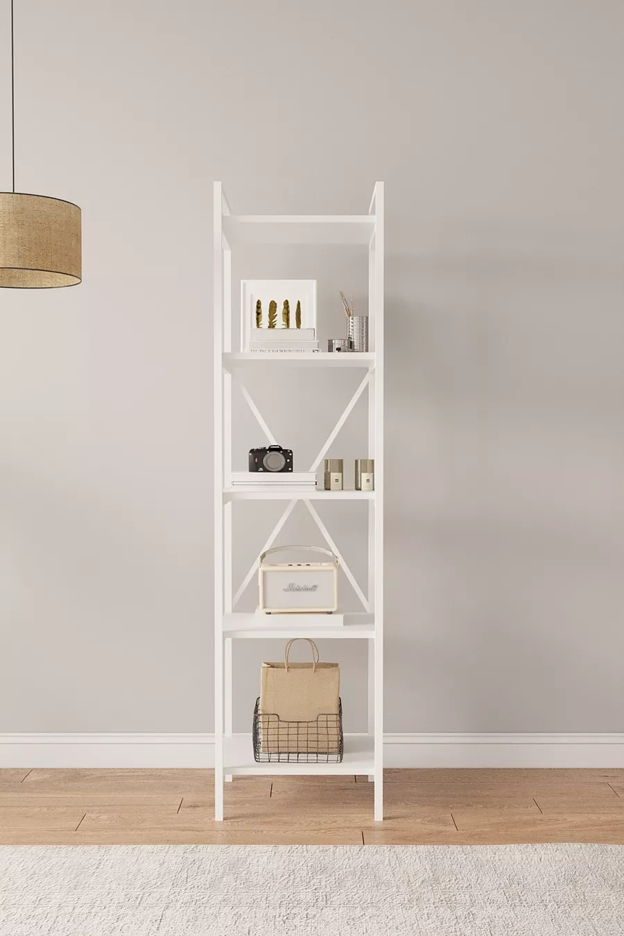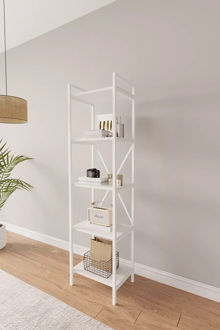 Tip: Klassiek Materiaal: Suntalam Kleur: Wit Hoogte: 170 cm Breedte: 45 cm Diepte: 34 cm Aantal planken: 5 Materiaal frame: Metaal Stijl: Scandinavisch Thema / Stijl: Scandinavisch Afkomst: TR Kenmerk: Lang