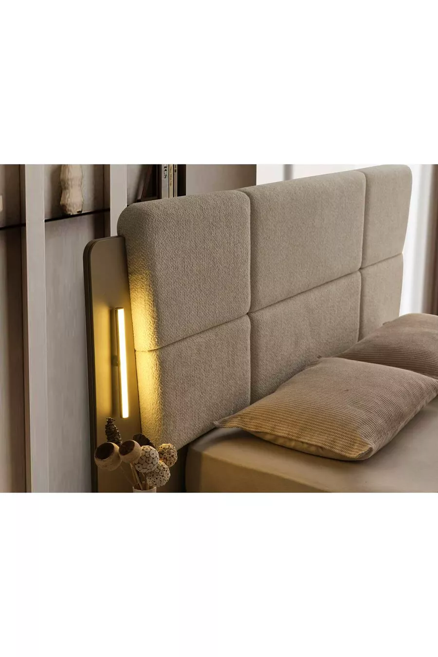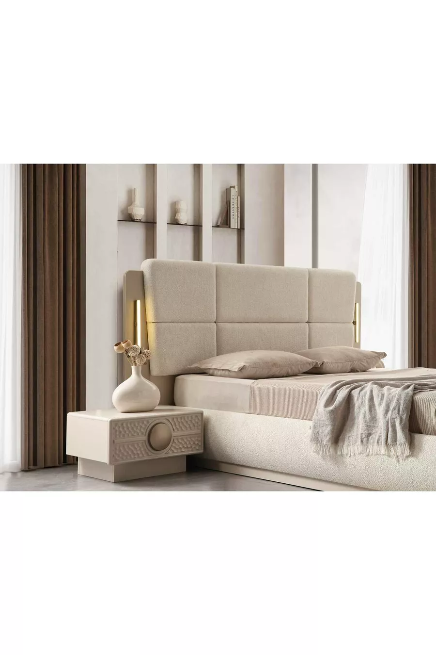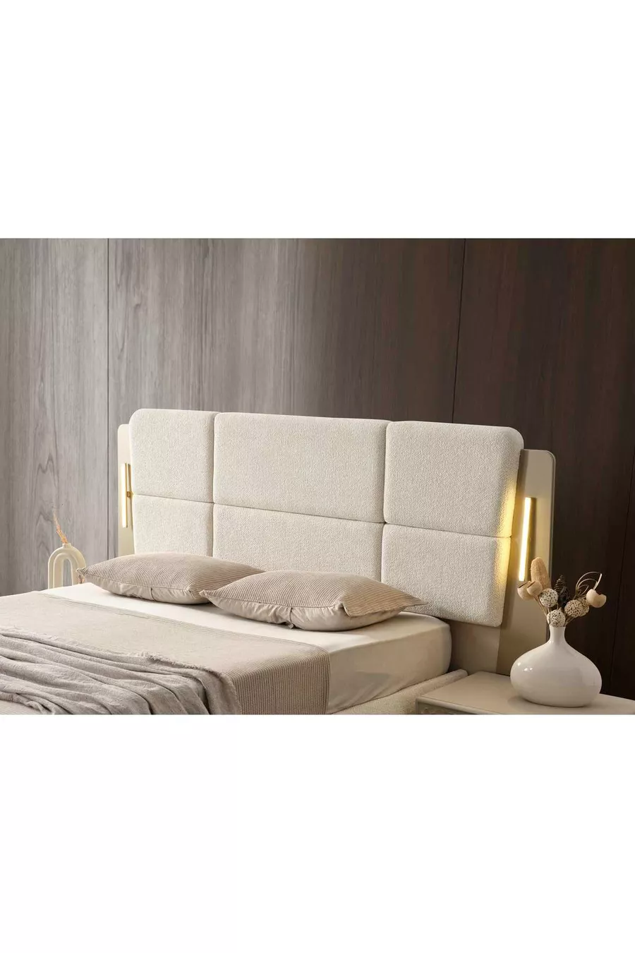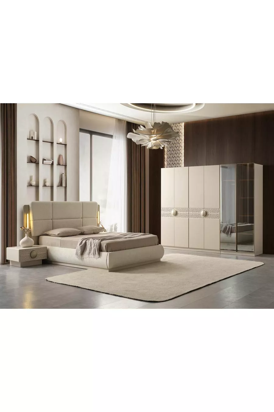 Setinhoud: Bed met opberglade + 2 nachtkastjes + ladekast + kledingkast