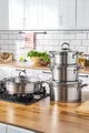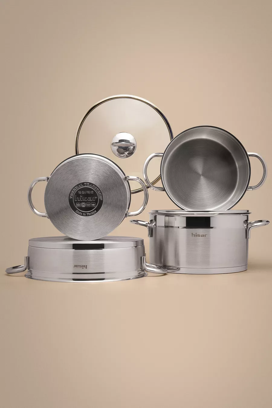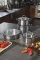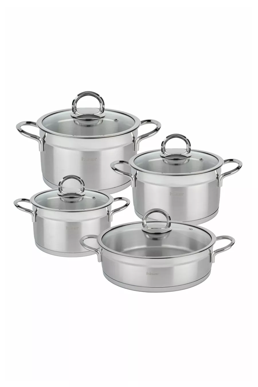 Kleur: Zilver Afmeting/Formaat: 24 cm Eigenschap: Geschikt voor inductiekookplaat Buitenkant Materiaal: Staal Binnenkant Materiaal: Staal Aantal Stukken: 8 Herkomst: TR Onderhoudsinstructies (voedselcontact): Veilig voor voedselcontact. Symbool voedselcontact: Ja Materiaal: Roestvrij staal
