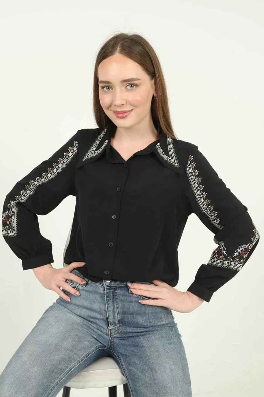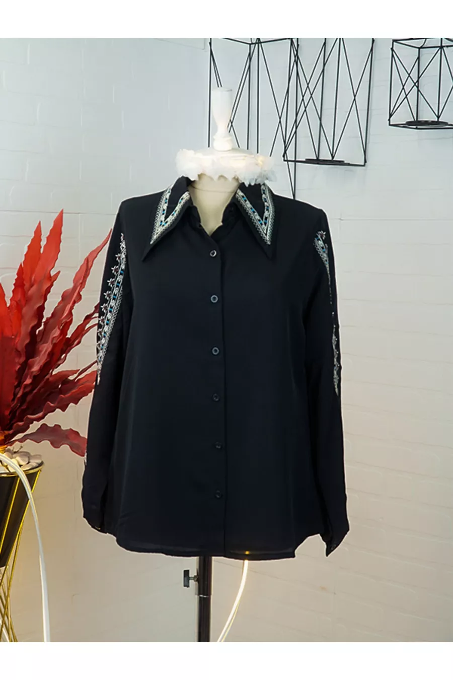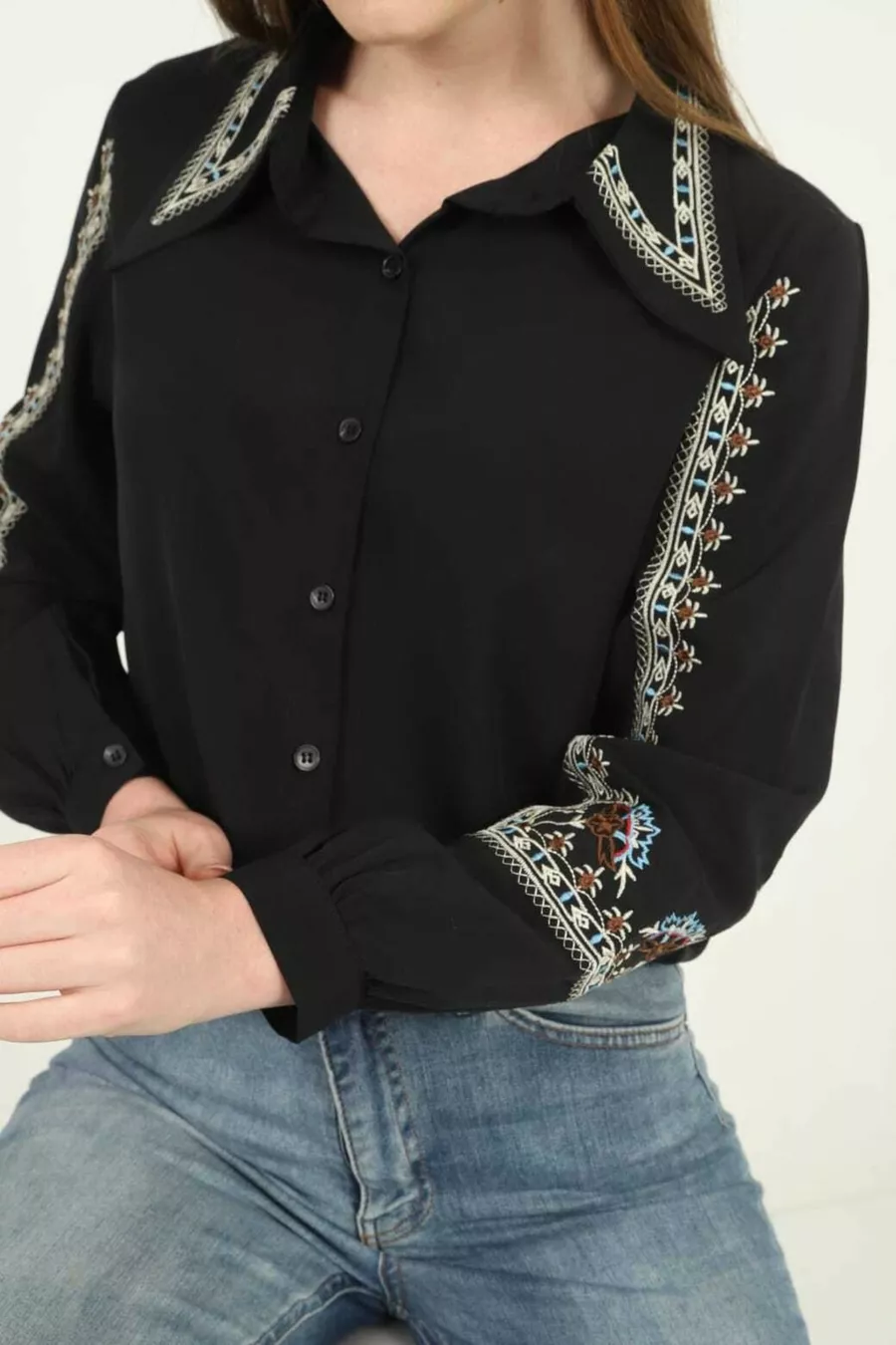 Overhemd met geborduurde kraag