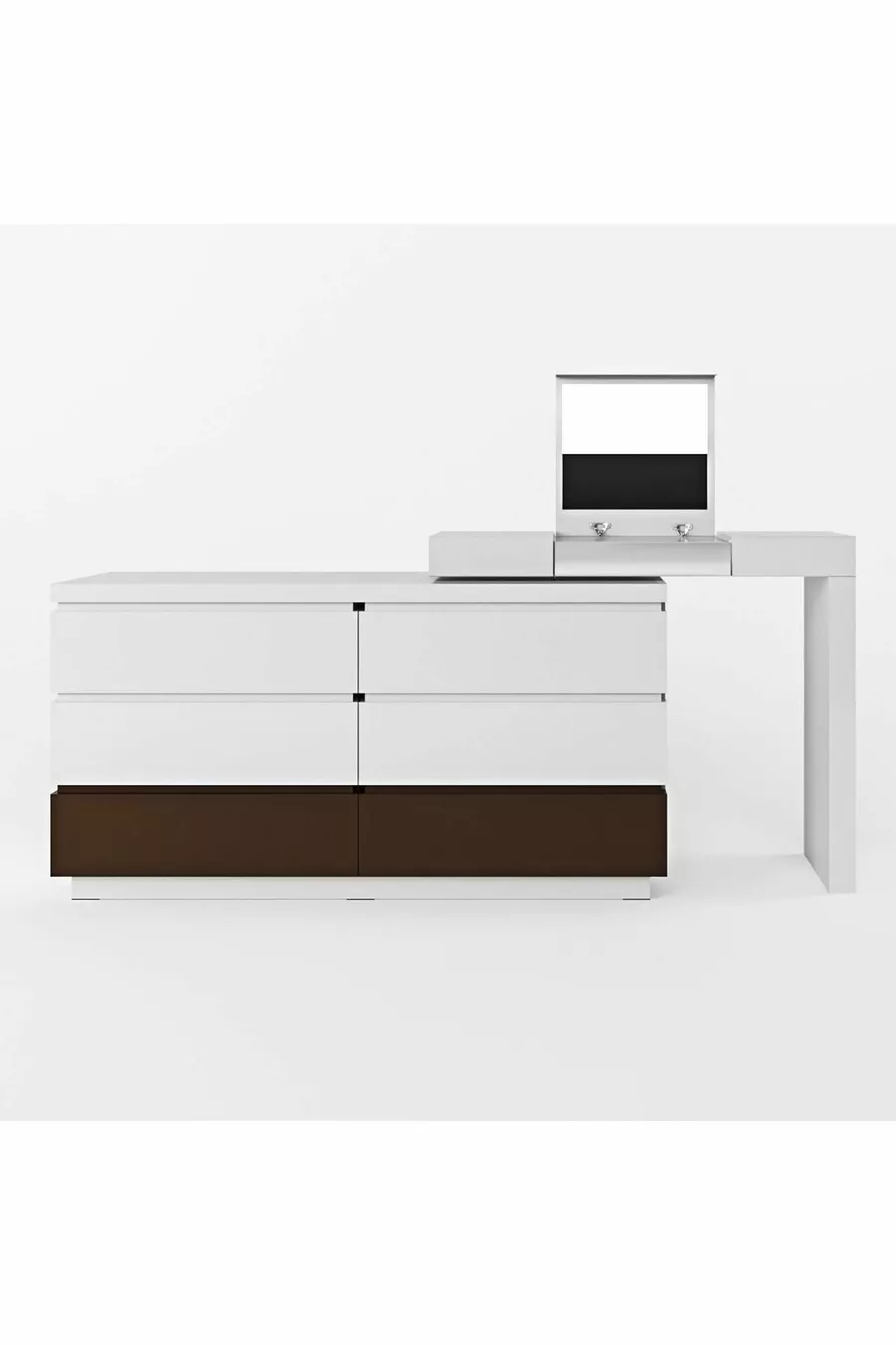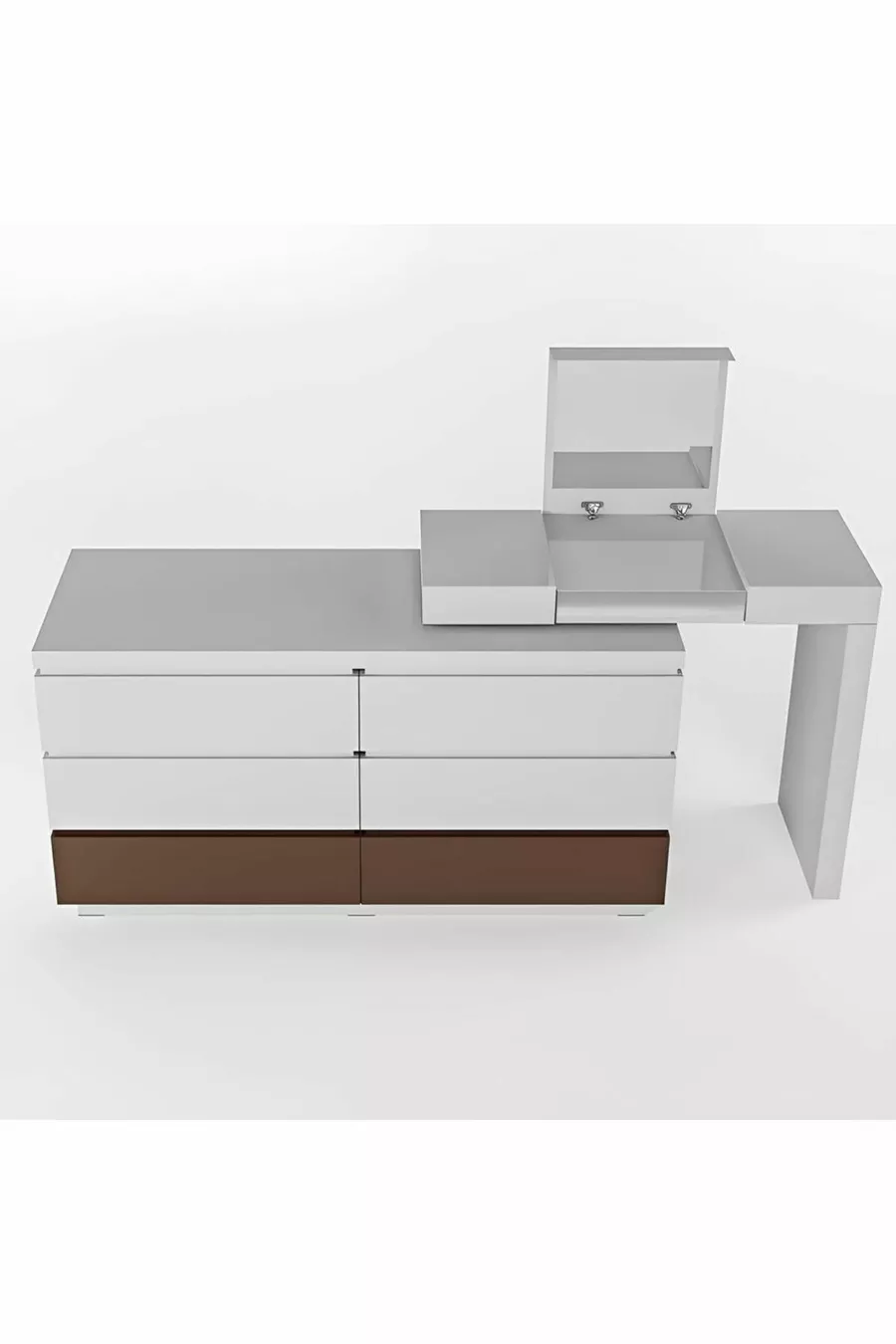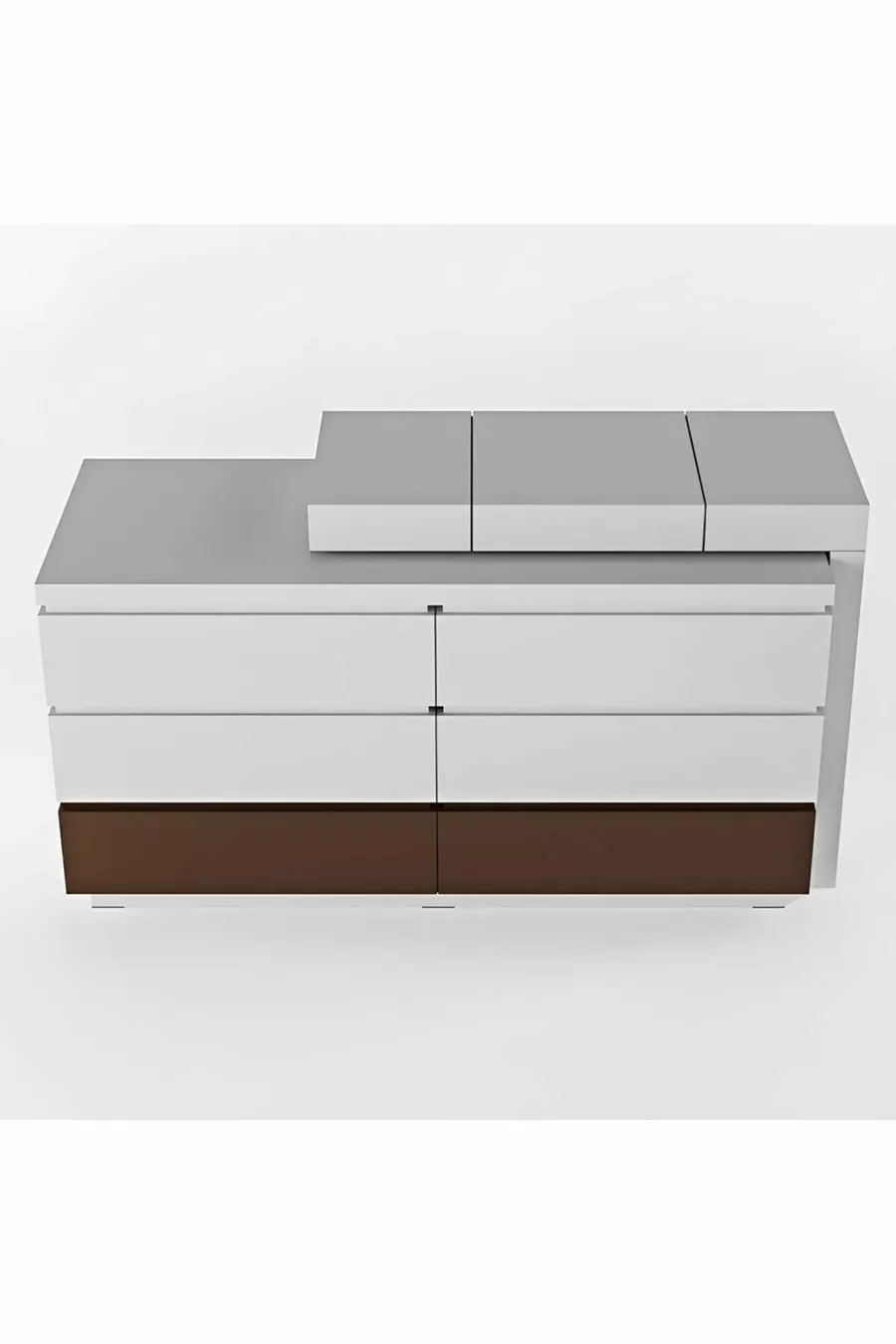 Kleur: Wit Garantieperiode: 2 jaar Materiaal: MDF Hoogte: 82 cm Breedte: 126 cm Diepte: 50 - 60 cm Aantal lades: 4 Producteigenschap: Met deksel en lades Stijl: Modern Thema / Stijl: Modern Kenmerk: Lang
