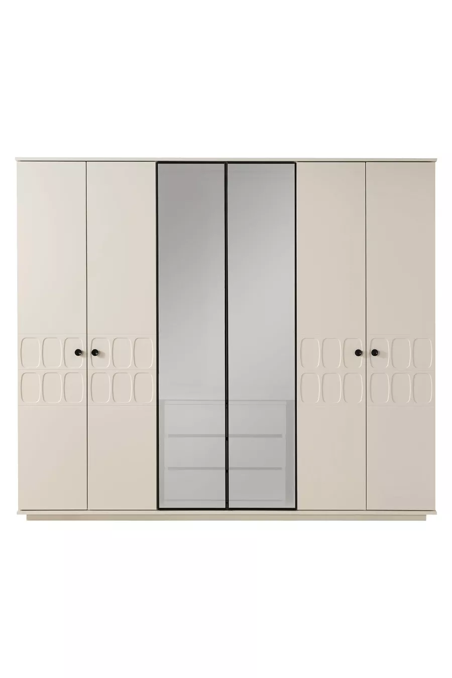Kleur: Wit Garantieperiode: 2 jaar Bedframe/Boxspringmaat: 160 x 200 Bedframefunctie: Zonder boxspring Kastfunctie: Met glas Materiaal kastlichaam: Spaanplaat Aantal deuren: 6 Setinhoud: Bedframe + 2 nachtkastjes + ladekast + kledingkast Stijl: Modern Thema / Stijl: Modern Herkomst: TR