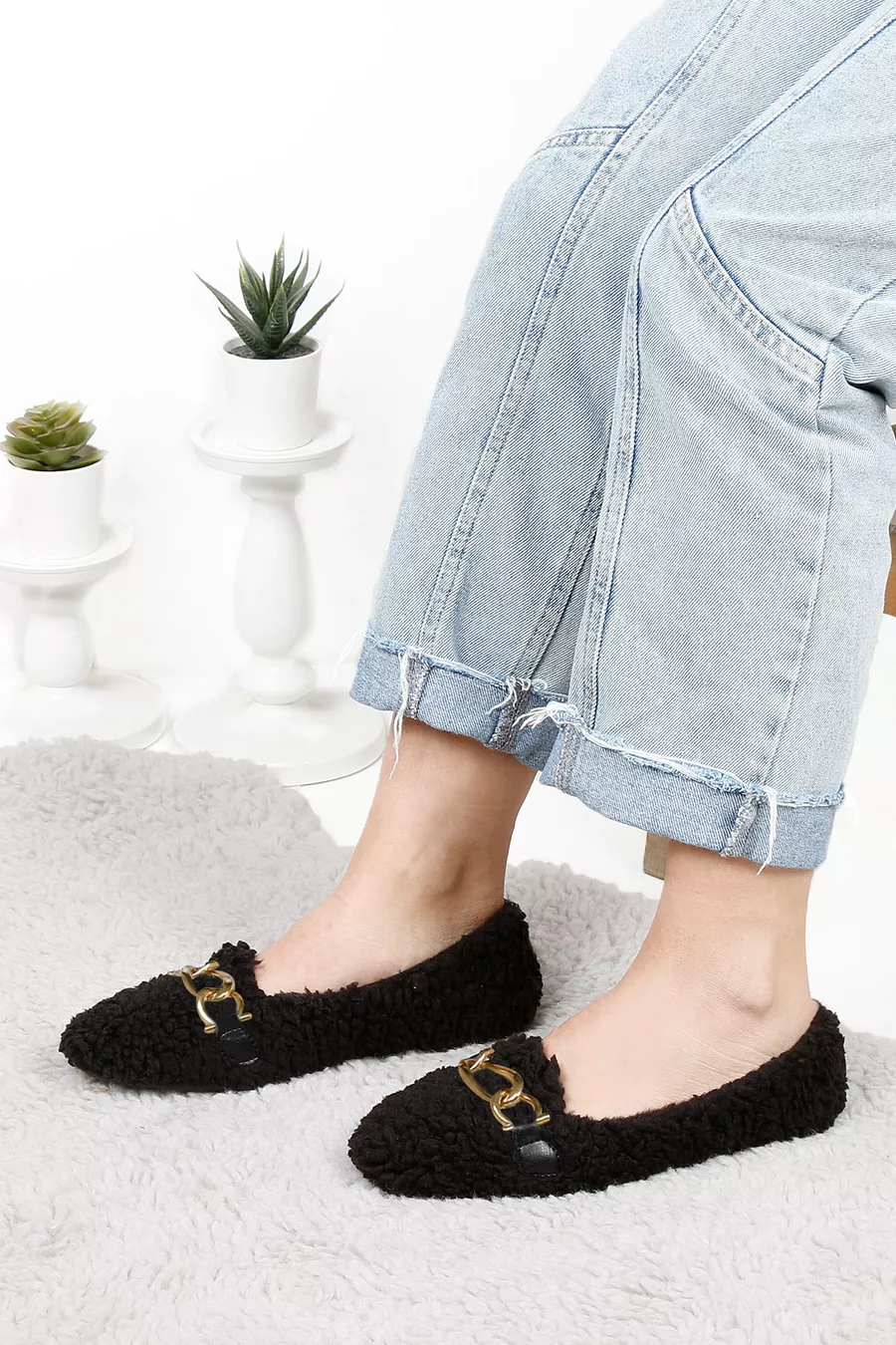 Pluche Gesp Bont Dameshuispantoffels