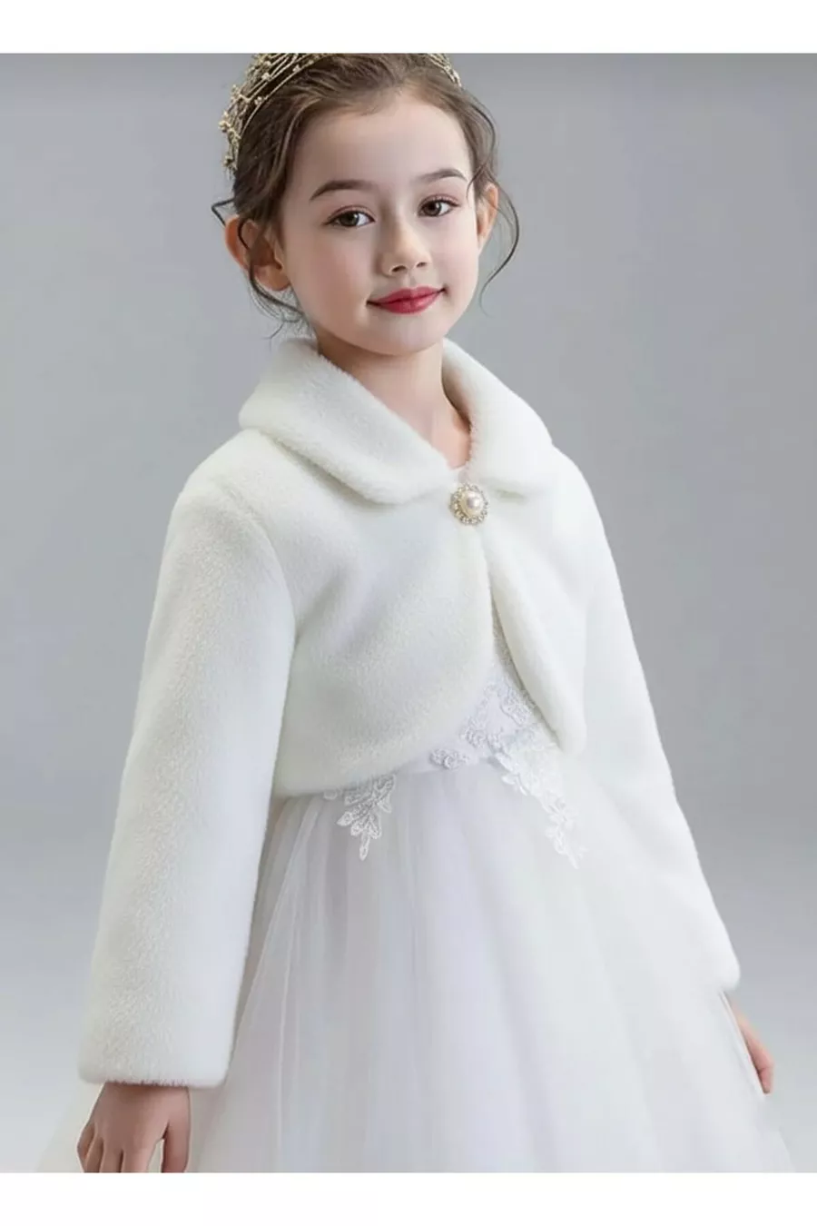 Pluche Lange Mouw Meisjesbolero Ecru