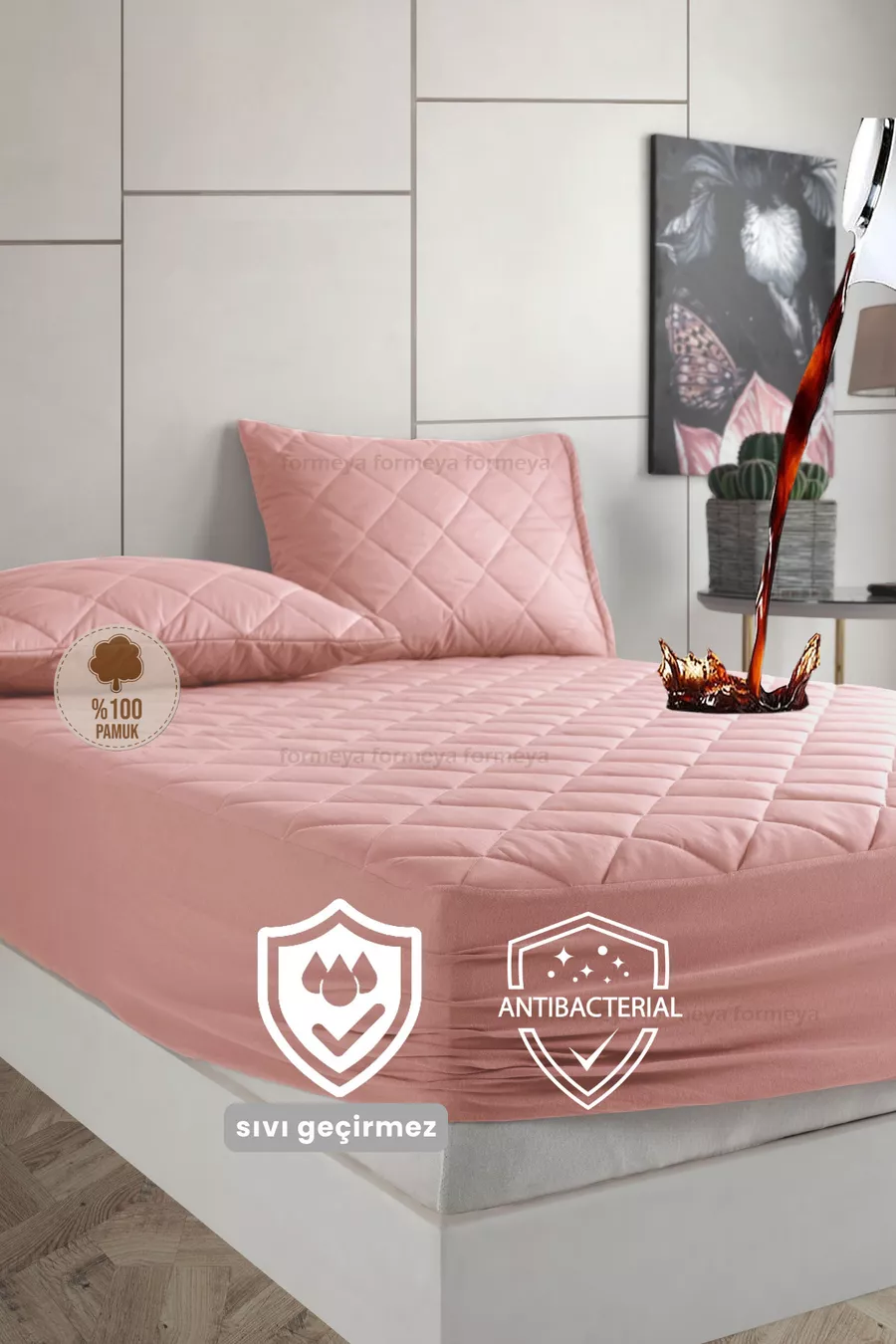 Poederkleurig % Katoen Gewatteerd Fitted Waterdicht Matrasbeschermhoes voor Enkel- en Tweepersoons- of Kingsize Bed