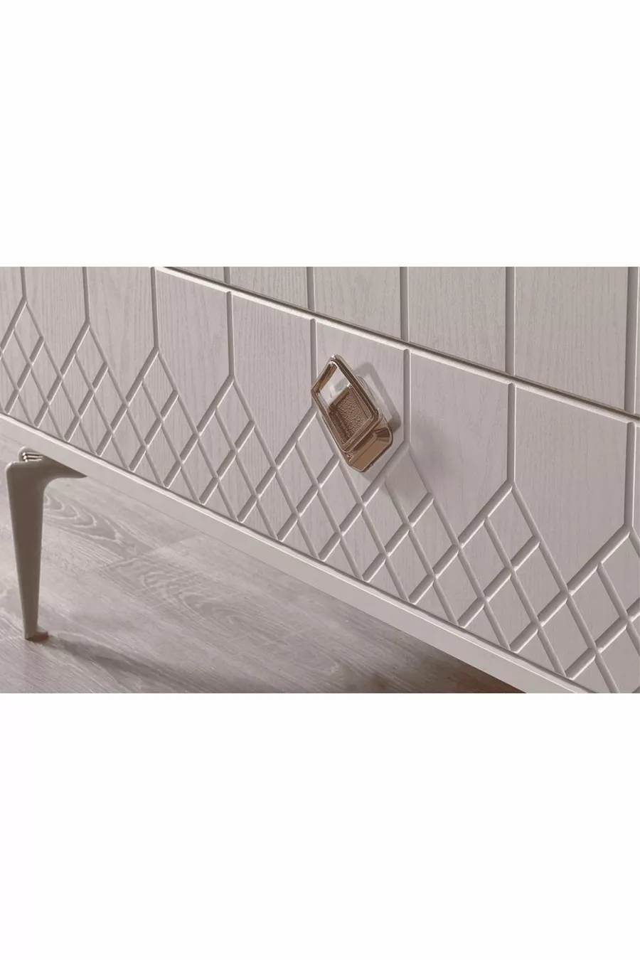 Kleur: Wit Garantietermijn: 2 jaar Materiaal: Suntalam Hoogte: 82 cm Breedte: 105 cm Diepte: 46 cm Aantal laden: 2 Producteigenschap: Met laden Stijl: Modern Thema / Stijl: Modern