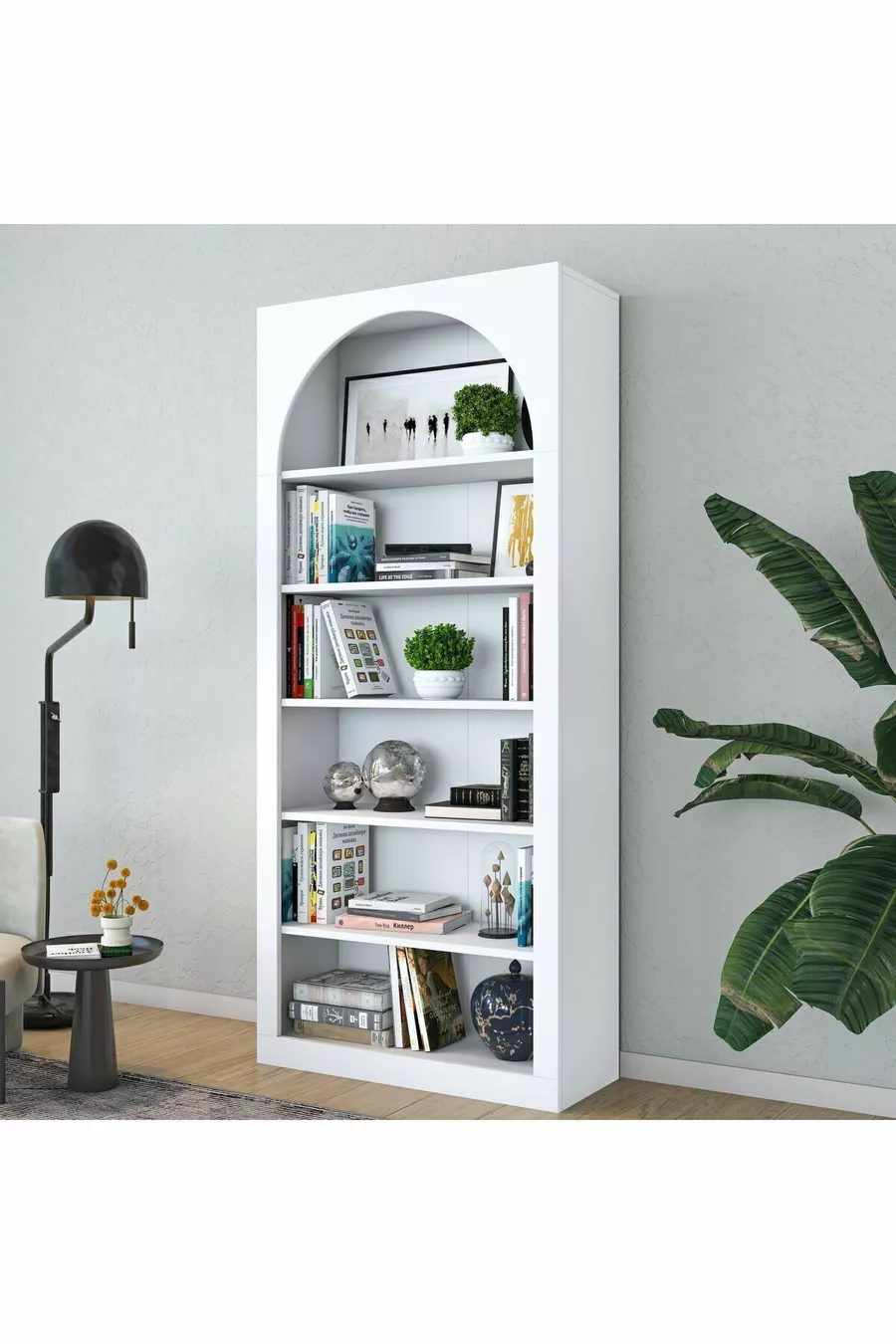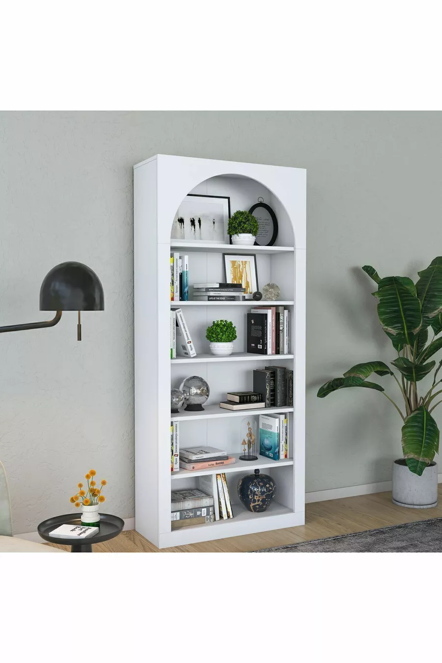 Rani Boekenkast 6 Planken Werkruimte Bibliotheek Moderne Wandplank Wit