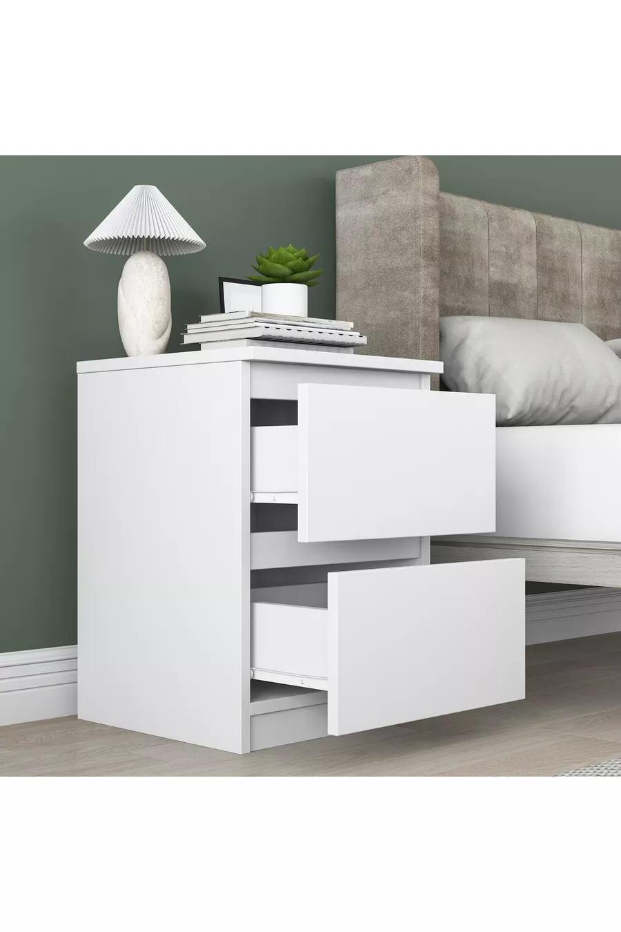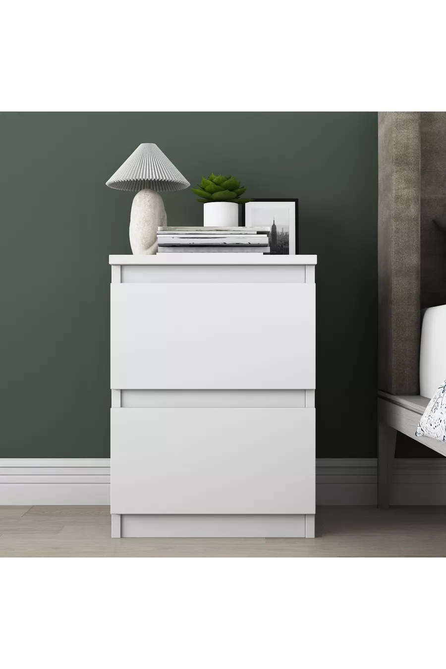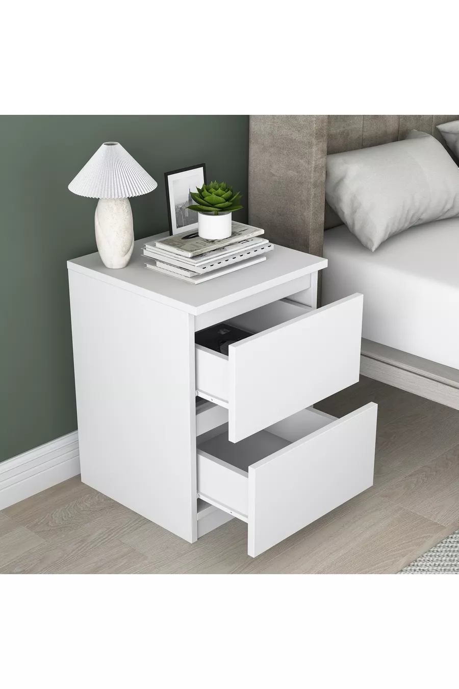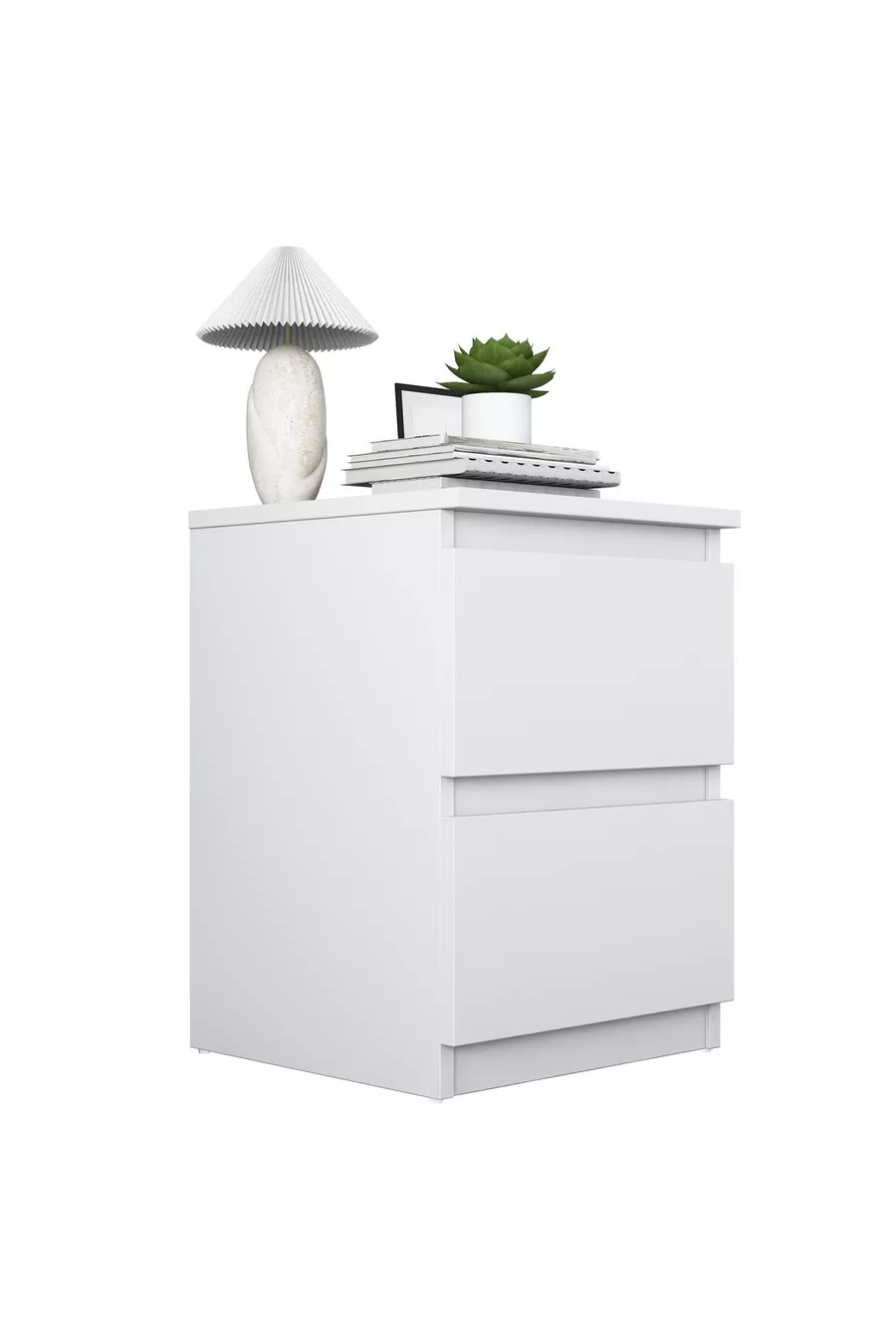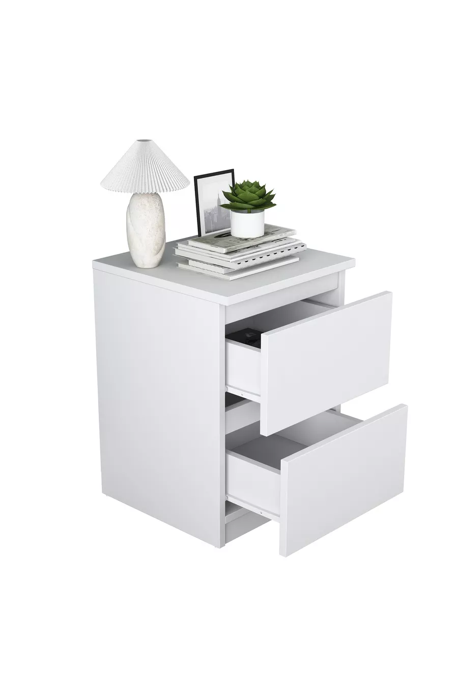 Materiaal: Suntalam Kleur: Wit Garantieperiode: 2 jaar Aantal lades: 2 Hoogte: 55 cm Breedte: 40 cm Diepte: 40 cm Stijl: Modern Thema / Stijl: Modern Herkomst: TR Kenmerk: Met lades