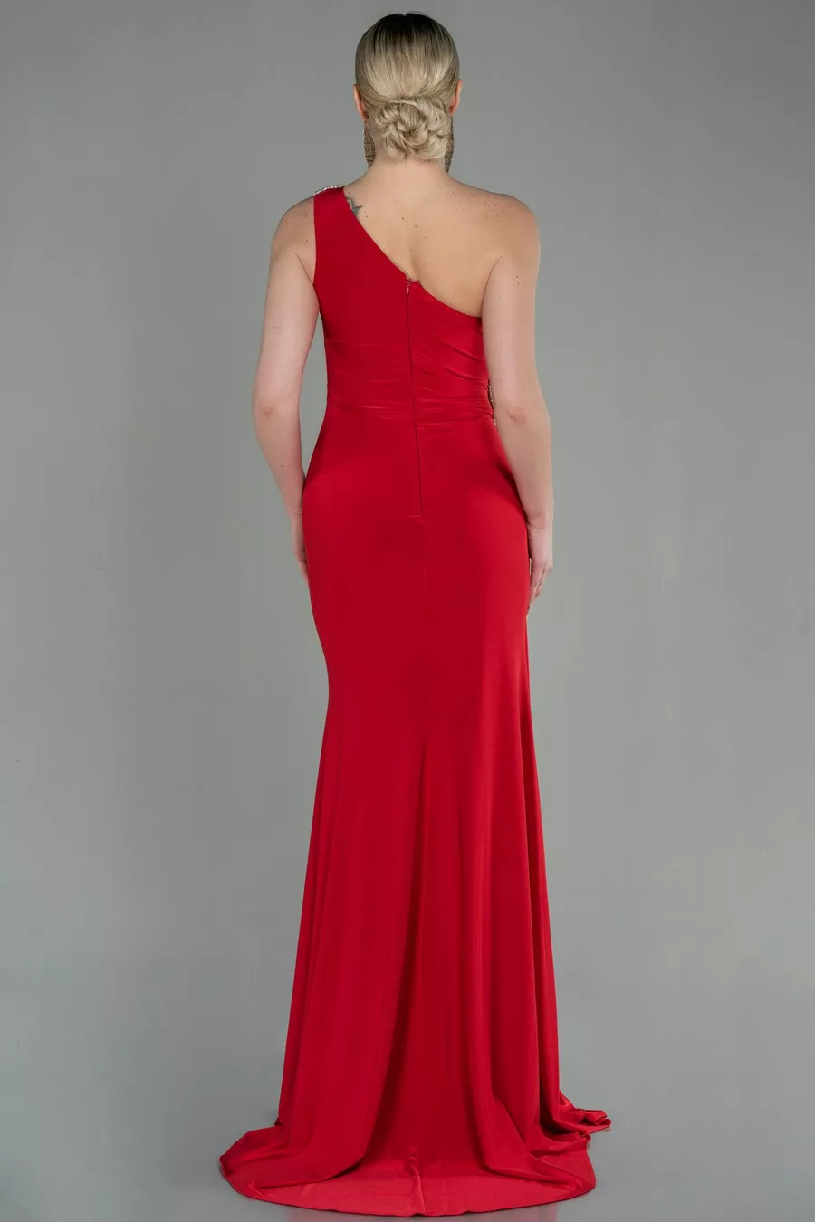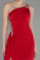 Red Stone Single Shoulder Leg Laag uitgesneden Lange Avondjurk