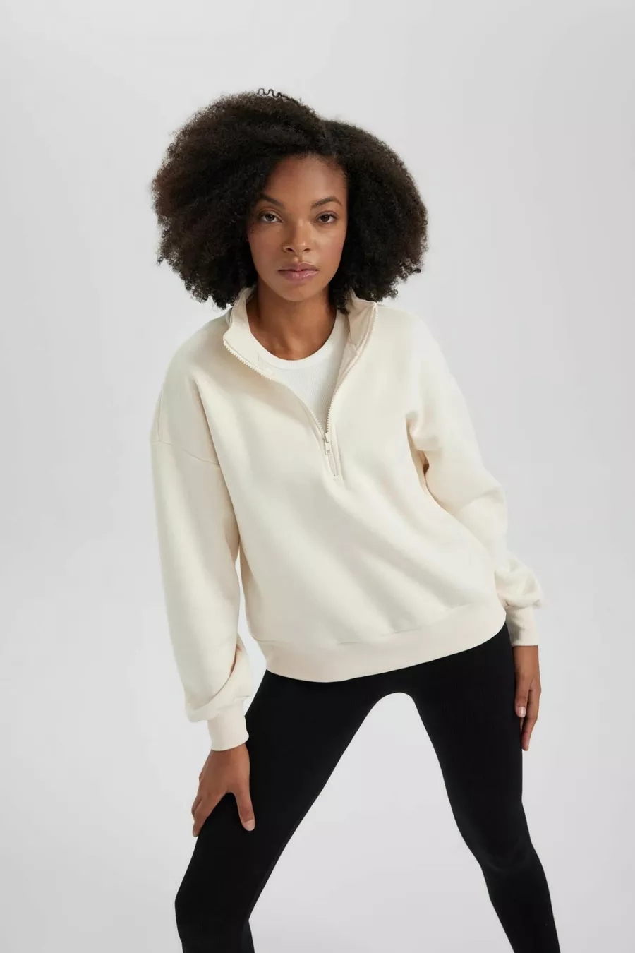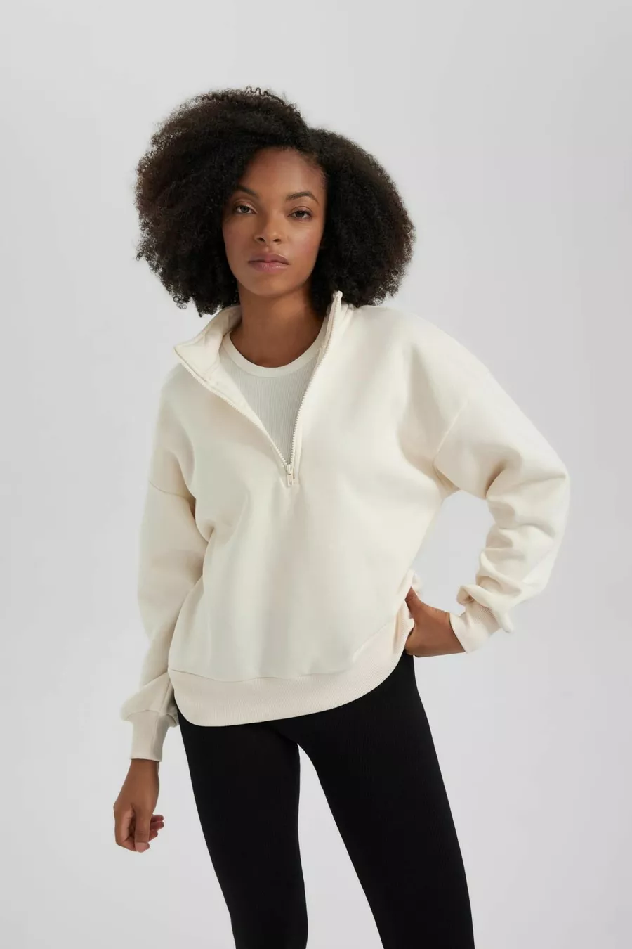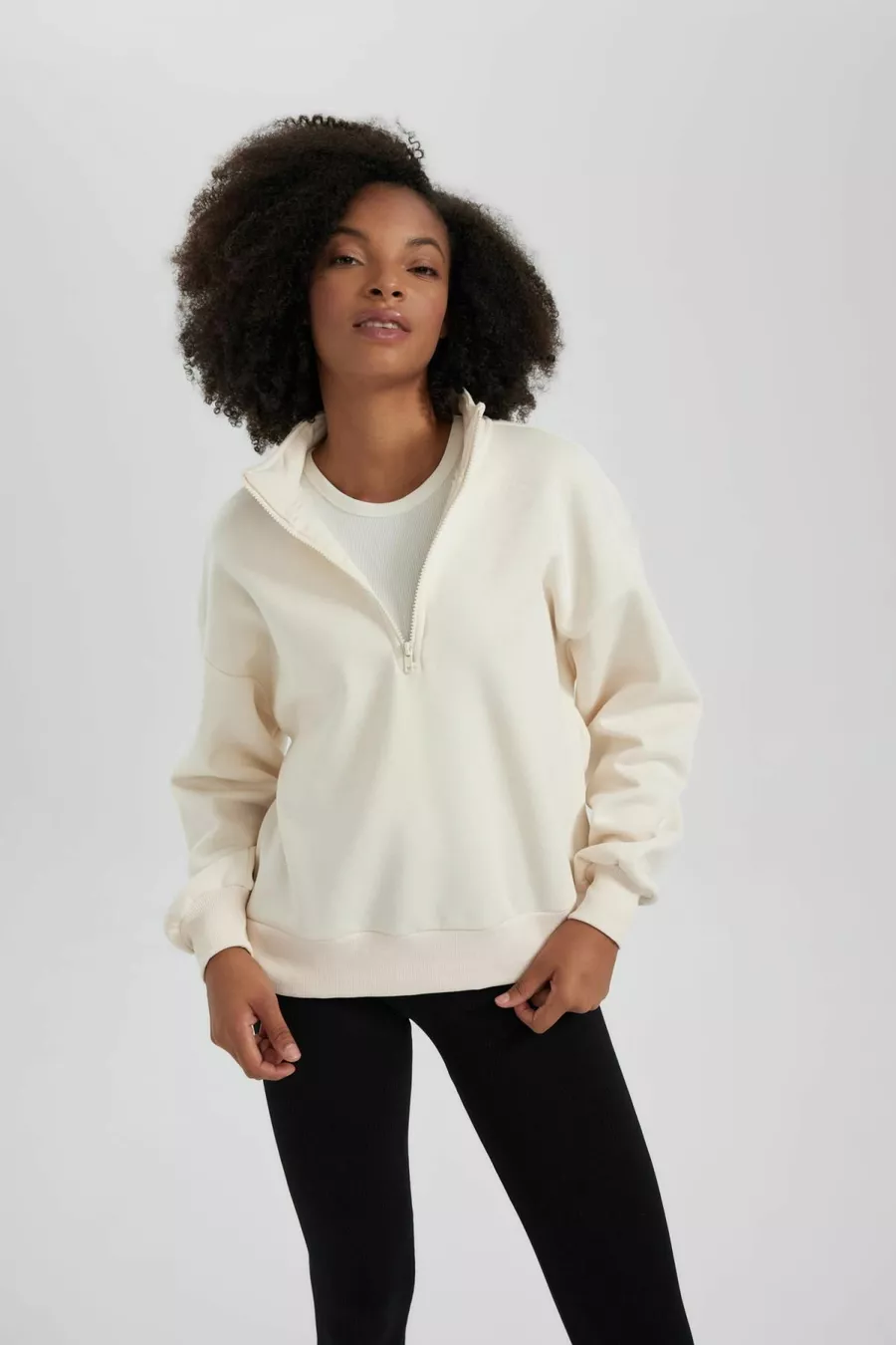 Regular Fit Rits Hoge Hals Sweatshirt wn