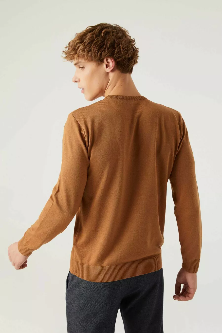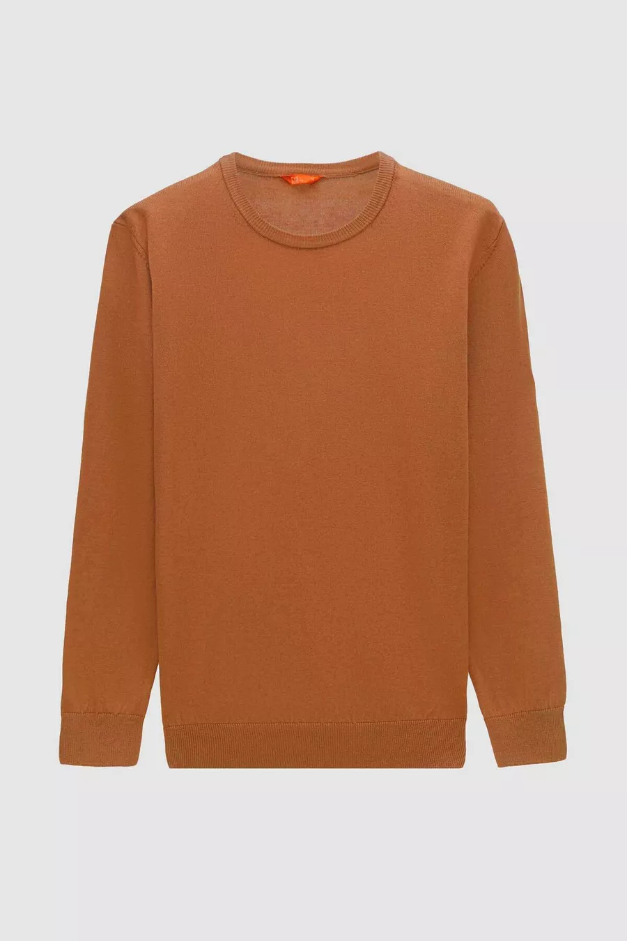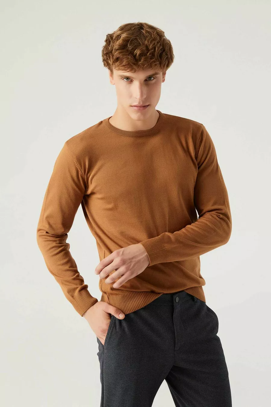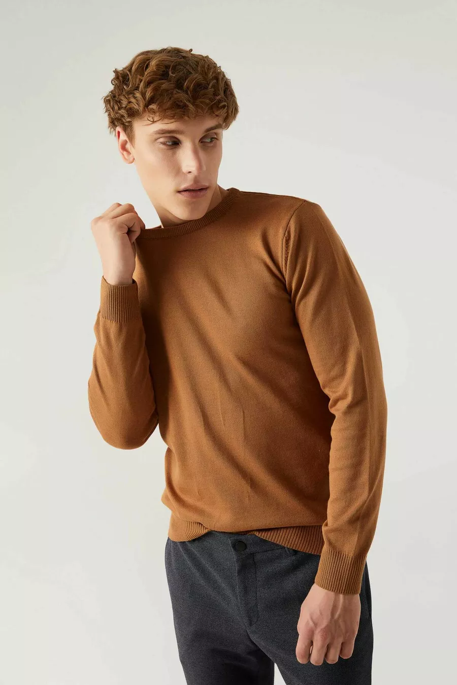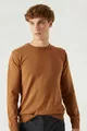 Regular Fit Camel Pluchevrije Ronde Hals Gebreide Trui